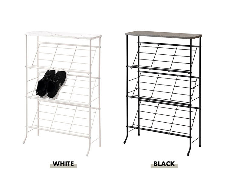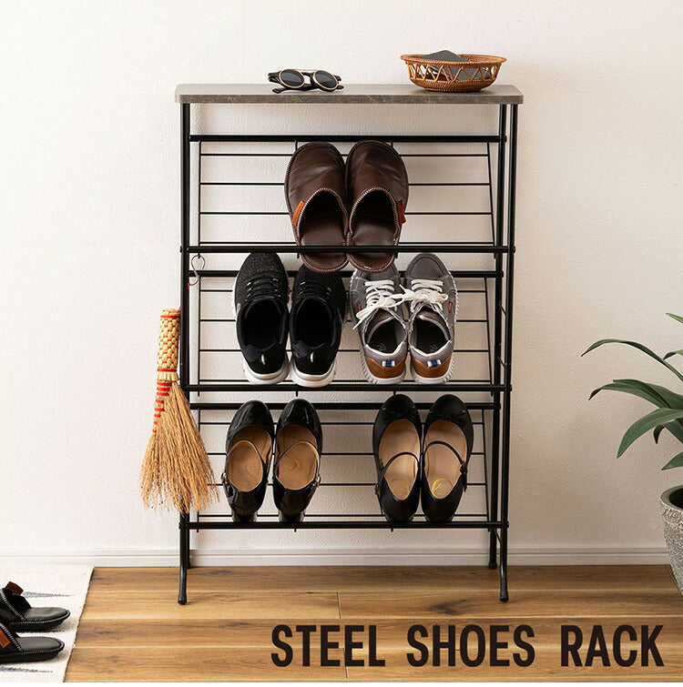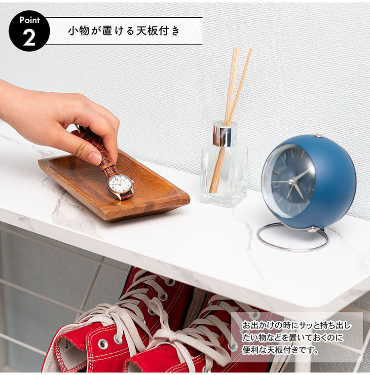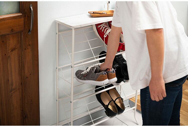 ●シックな石目調天板とスチールを組み合わせた、スタイリッシュですっきりと収納できるシューズラック。