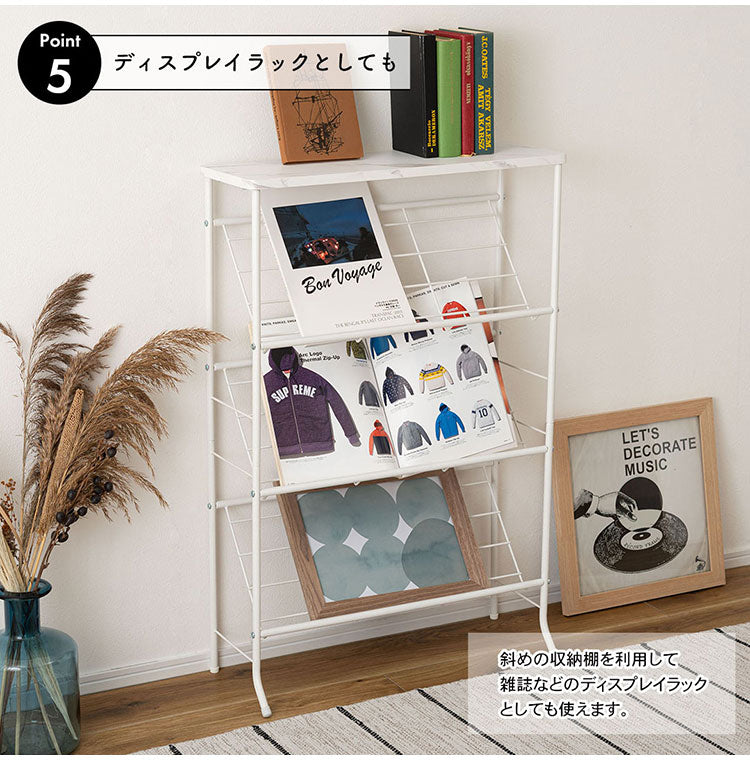 ●斜めの収納棚を利用して雑誌などのディスプレイラックとしても。
