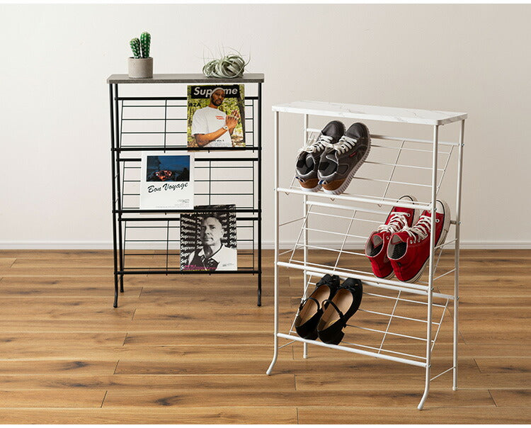 石目調シューズ・ディスプレイラック LFS-55 東谷 シューズラック 3段 幅60cm 靴箱 棚 ディスプレイラック オープンラック オープンシェルフ マガジンラック スチールラック 下駄箱 靴箱 玄関収納(代引不可)