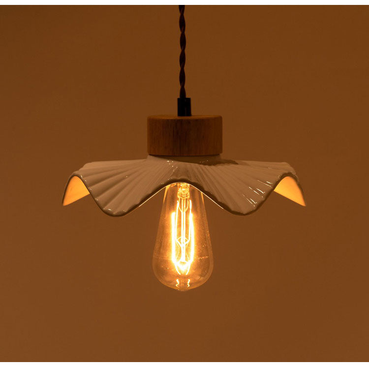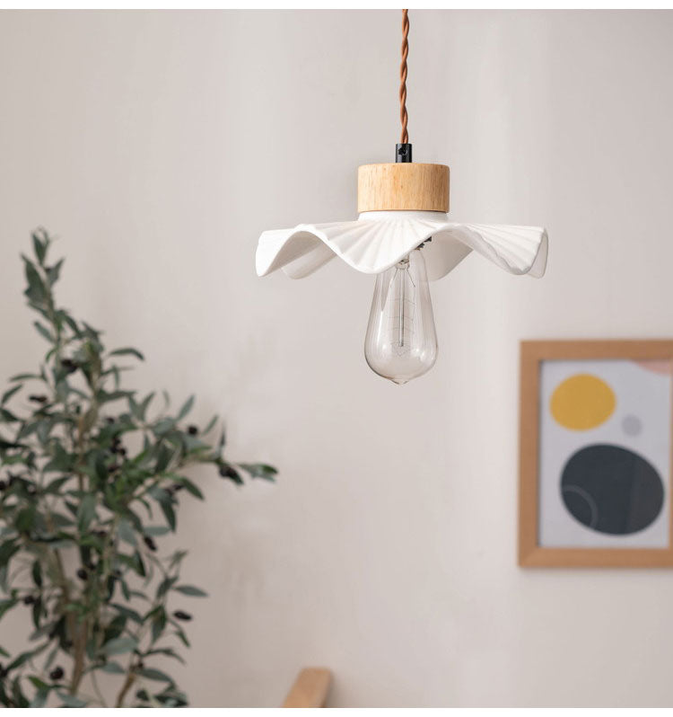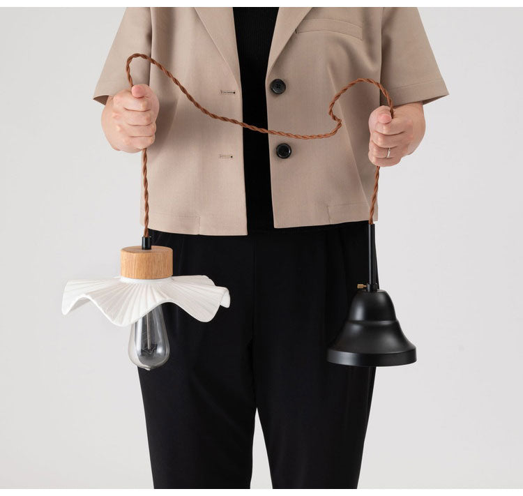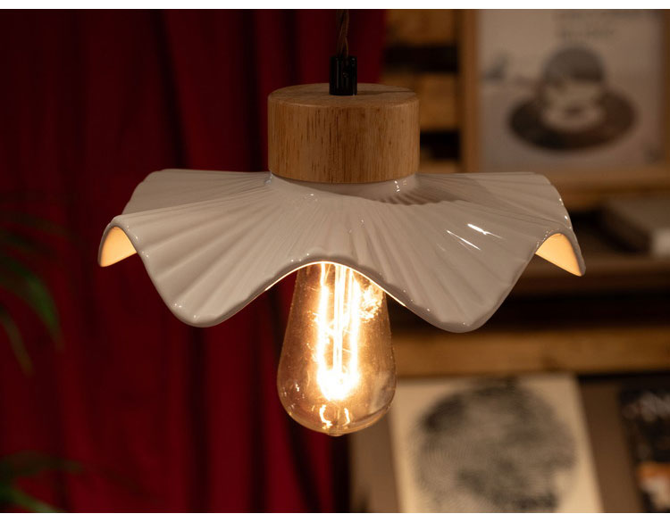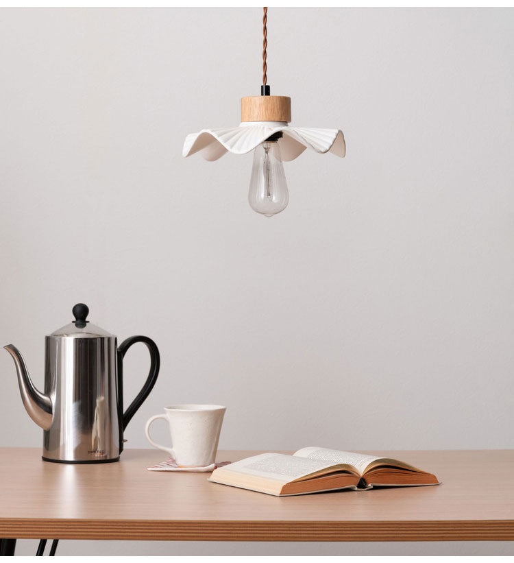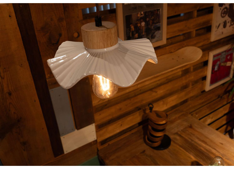 ライト 照明 ライト LED対応 天然木 陶器 吊り下げ式 ペンダントライト リビング キッチン おしゃれ レトロ ダイニング 寝室 カフェ 天井照明 ホワイト 白 シンプル 長さ調節(代引不可)