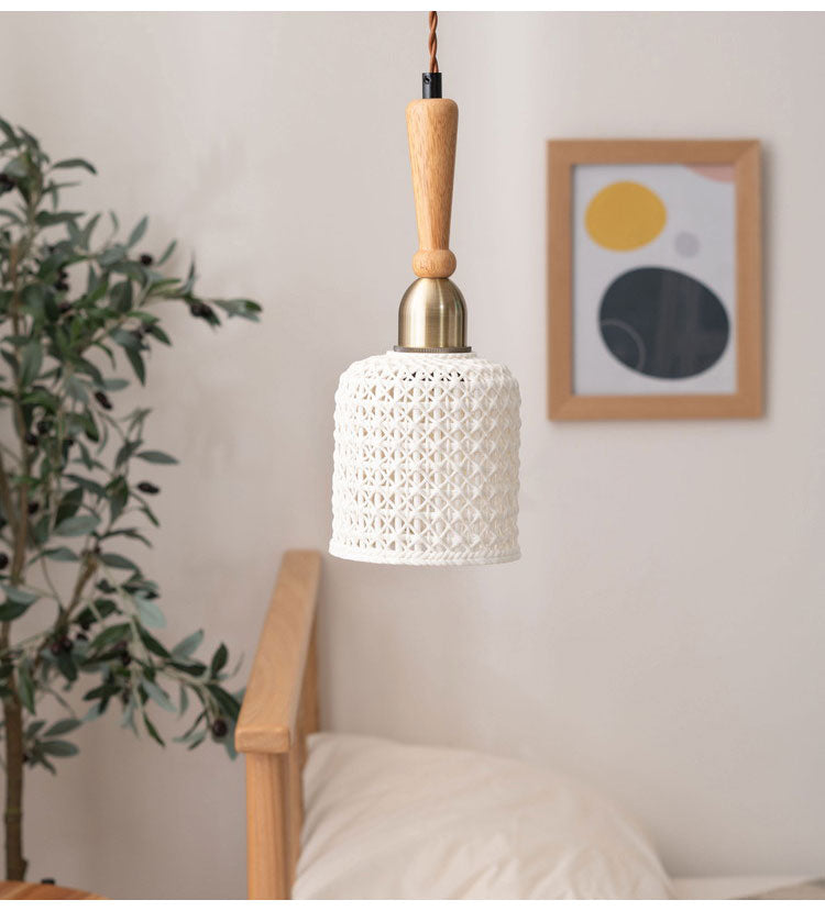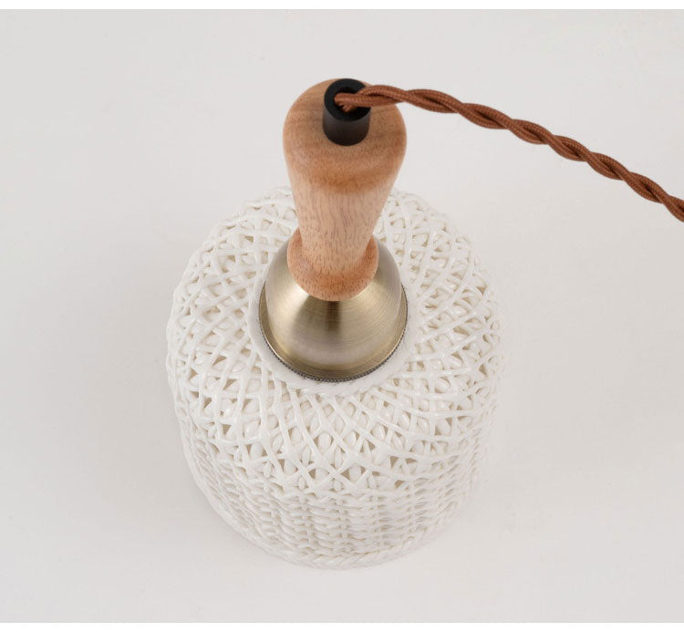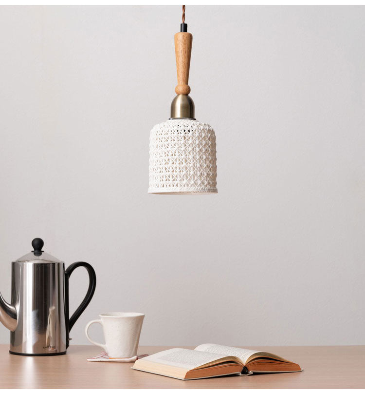 ライト 照明 ライト LED対応 天然木 陶器 吊り下げ式 ペンダントライト リビング キッチン おしゃれ レトロ ダイニング 寝室 カフェ 天井照明 ホワイト 白 シンプル 長さ調節(代引不可)
