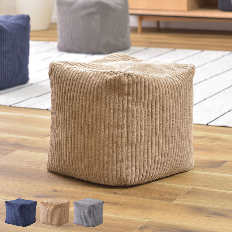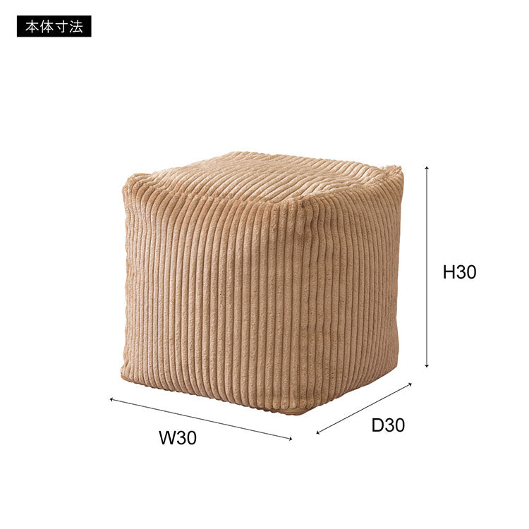 クッション ビーズクッション ミニビーズクッション コーデュロイ キューブ型 四角 カバーロング ダブルファスナー マイクロビーズ 持ち運び 軽い コンパクト シンプル ナチュラル(代引不可)