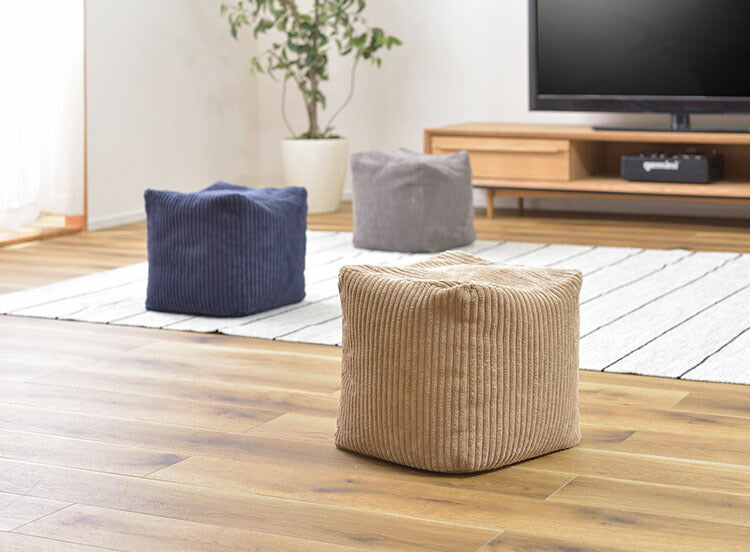 キューブ型ミニビーズクッションColonにコーデュロイ生地が仲間入り。こっくりとしたカラーで落ち着いた空間を演出します。