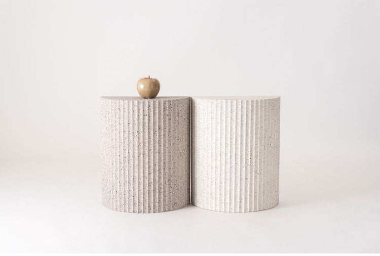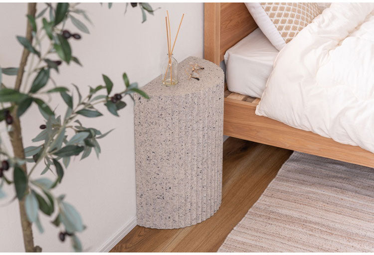 サイドテーブル 幅40cm 繊維板 おしゃれ シンプル シック モダン テラゾー柄 おしゃれ かわいい 角丸 ライトグレー ホワイト リビング ダイニング 寝室(代引不可)