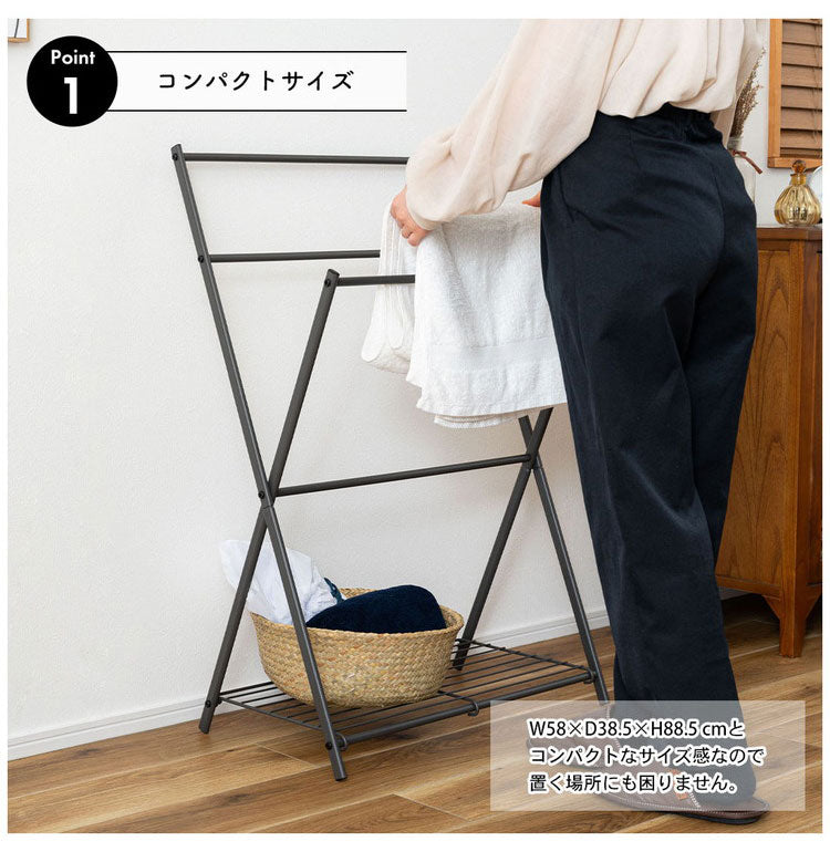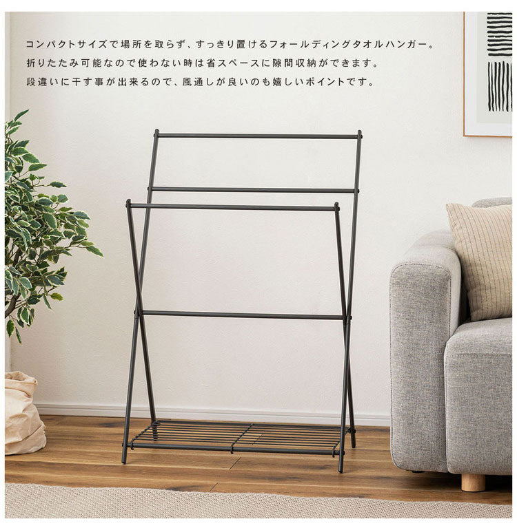 ●コンパクトサイズで場所を取らず、すっきり置けるフォールディングハンガー。