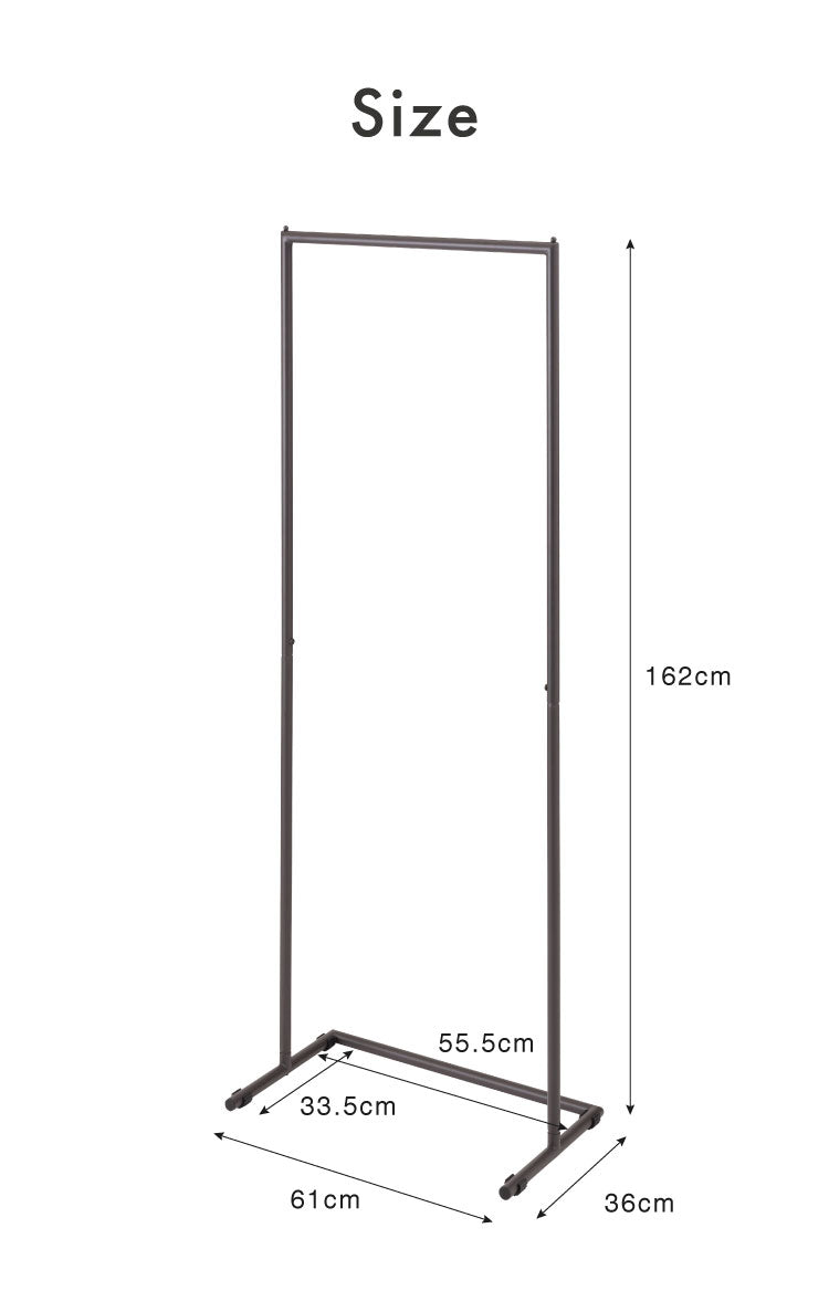 シンプルで無駄のないデザインのスチール製ハンガーラック。