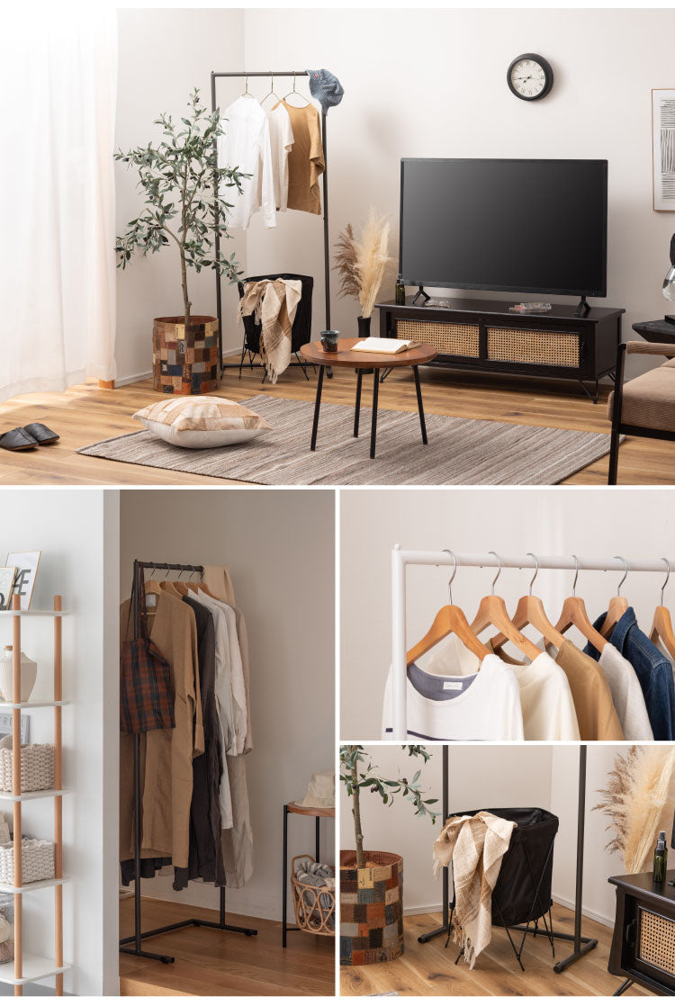 お部屋の雰囲気を選ばず、シャープでスッキリとしたデザインは、掛けられた洋服を品よく見せてくれます。
