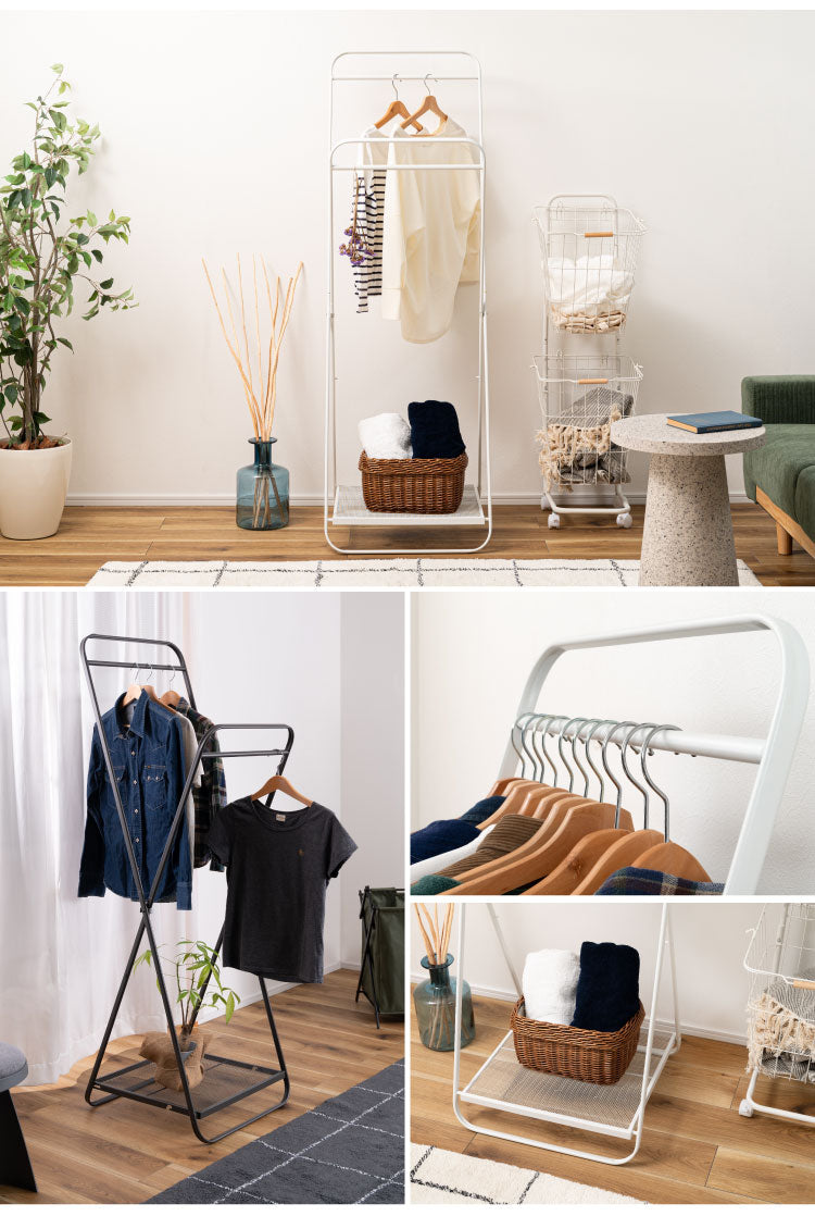 省スペースデザインで場所を取らず、スッキリ置けるフォールディングハンガー。