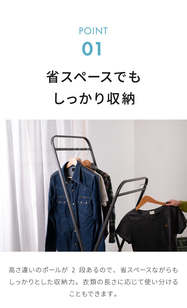 ハンガーの傾斜を2段階で変える事が出来るので、高さ・奥行きの調整が可能です。
