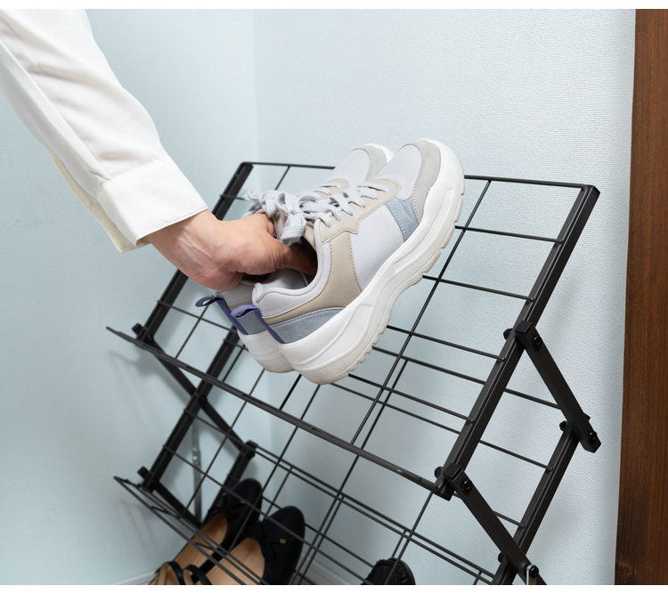 折りたたみ可能で、省スペースなシューズラック