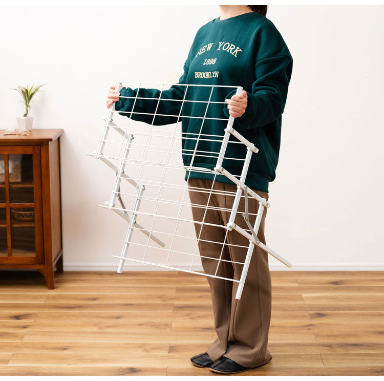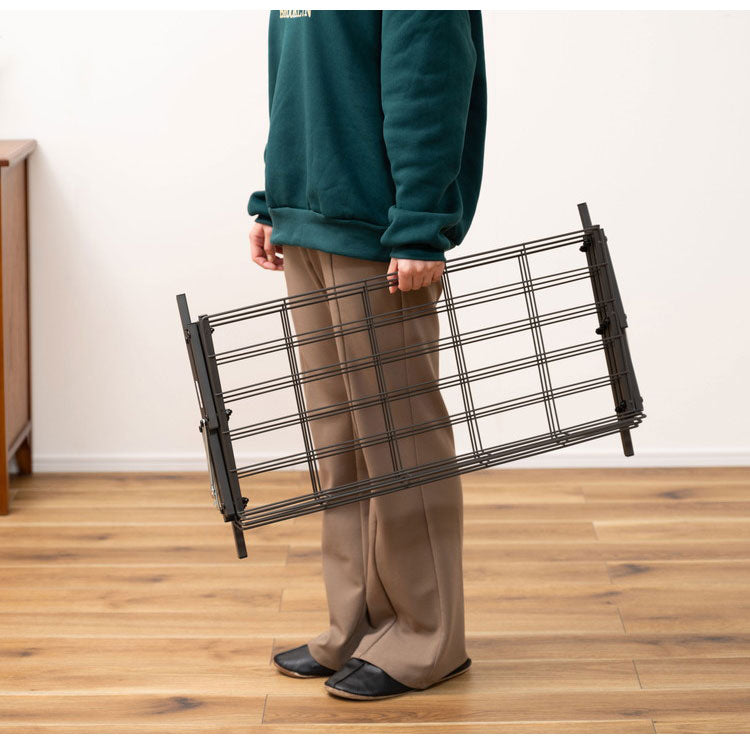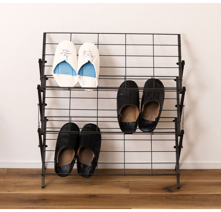 スチール素材で通気性も良く、見た目もサイズもスッキリとしたデザインのシューズラック。更に、折りたたみが可能なので、使わない時は場所を取らずに収納しておけます。