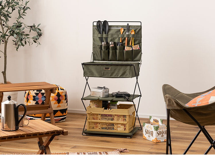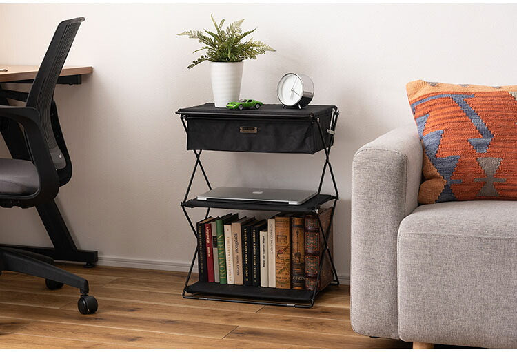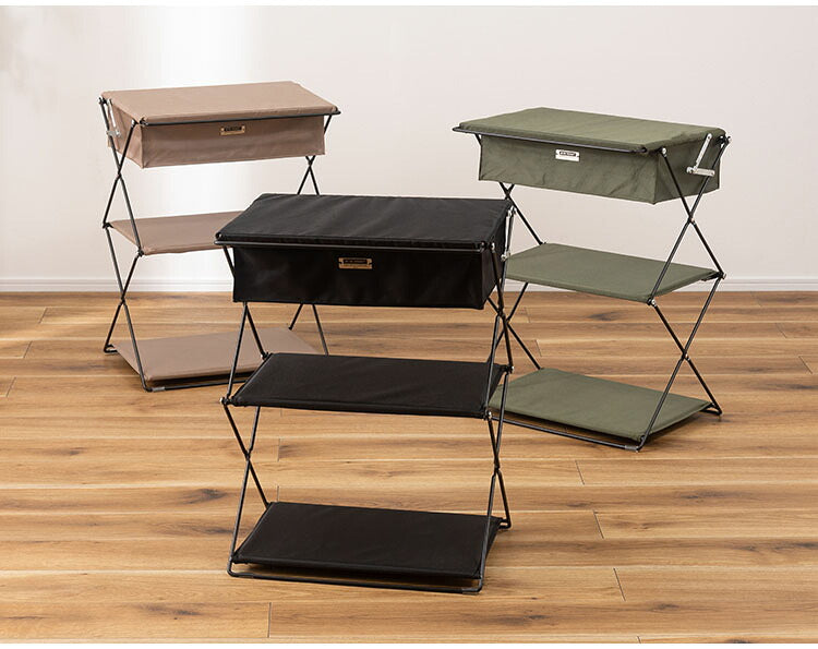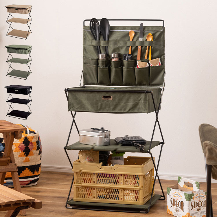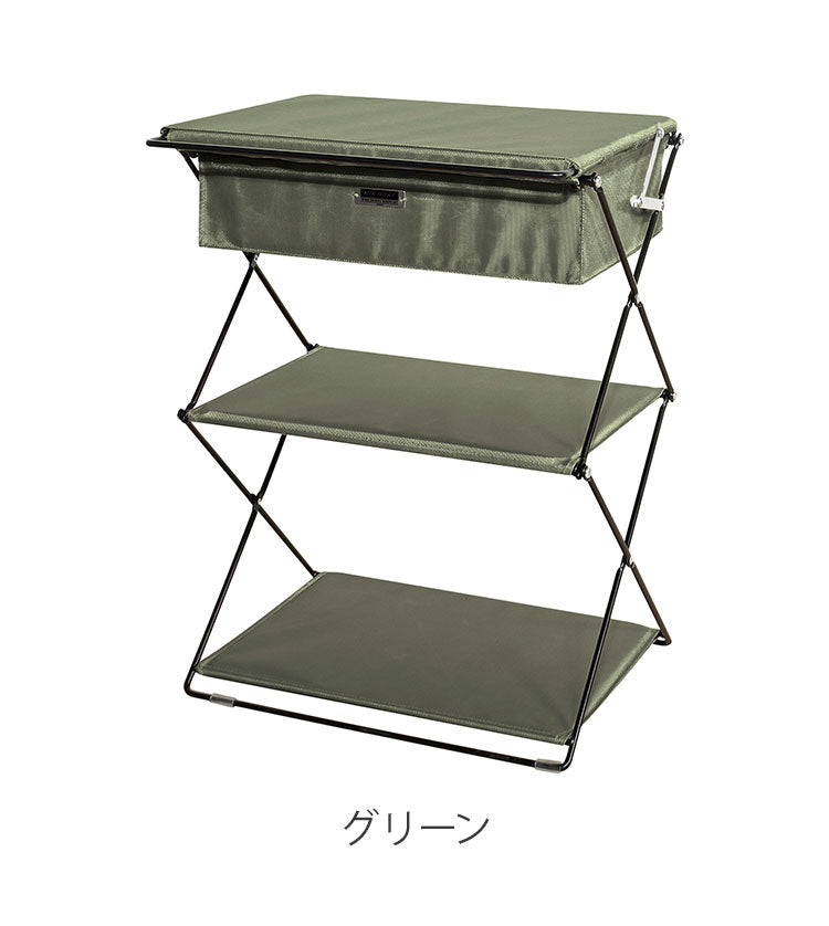 ラック シェルフ おしゃれ スリム シンプル コンパクト 折りたたみ フォールディング サイドテーブル 収納ラック 軽量 ベージュ グリーン ブラック かっこいい アウトドア レジャー キャンプ(代引不可)