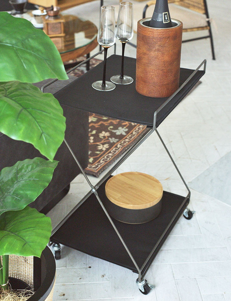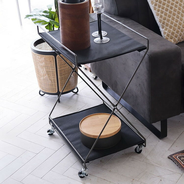 フォールディングワゴン 2段 ワゴン カート キャスター付き 折りたたみ コンパクト 省スペース スチール おしゃれ 黒 ブラック スリム 棚 ラック キャビネット サイドワゴン デスクワゴン(代引不可)