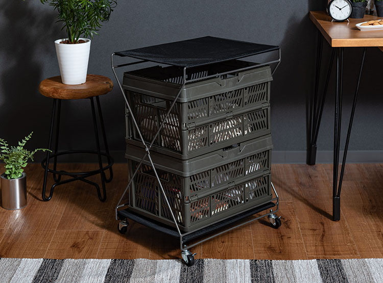 スタッチボックス(LFS-31/32)を収納できるフォールディングワゴン。スタッチボックスと合わせて大容量収納可能。使用しないときはたたんで収納することもできます。
