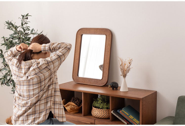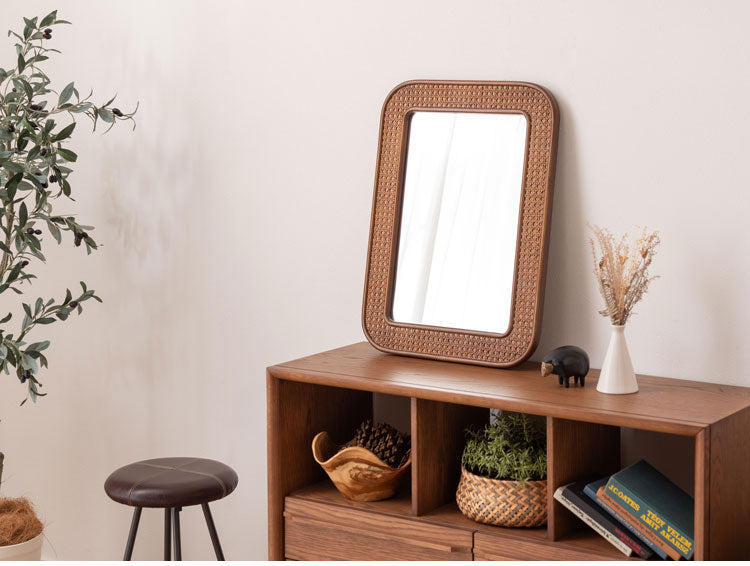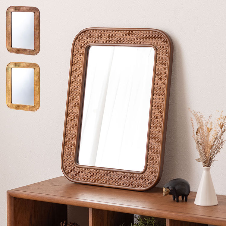 ミラー 幅45cm 鏡 おしゃれ 北欧 可愛い 小さめ 小さい 韓国インテリア かわいい おしゃれ ブラウン ナチュラル リビング 洋室 和室 玄関 置き型 壁掛け(代引不可)