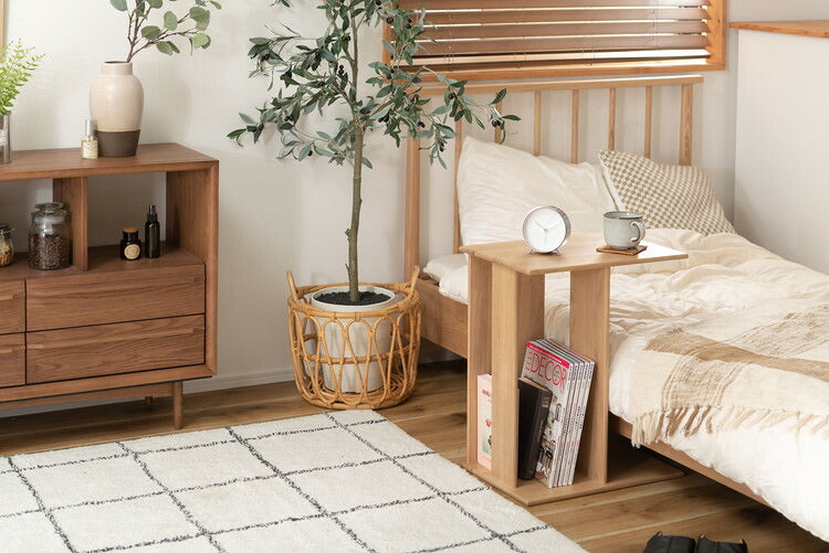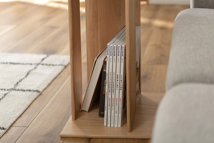 ●耐久性があり高級木材の一つとされる、美しく個性的な雰囲気を持つ天然木(オーク)の無垢材(幅ハギ材)を使用したサイドテーブル。●足元の収納スペースが移動の手間を省き、空間を快適に。●ソファ用のサイドテーブルとして、またベッド周りのサイドテーブルとしてもおすすめ。●幅32×奥行45cmの広々とした使いやすい天板スペース。●上下どちらも天板として使えるので、ソファの右側・左側どちらに置いても使えます。●天板と天板の間の広いスペースはマガジンラックや小物収納として便利。●角は丸みを持たせてあるので安心して使えます。●天然木(オーク)の無垢材を使用した滑らかで手触りの良い、ぬくもり溢れるサイドテーブル。