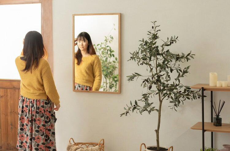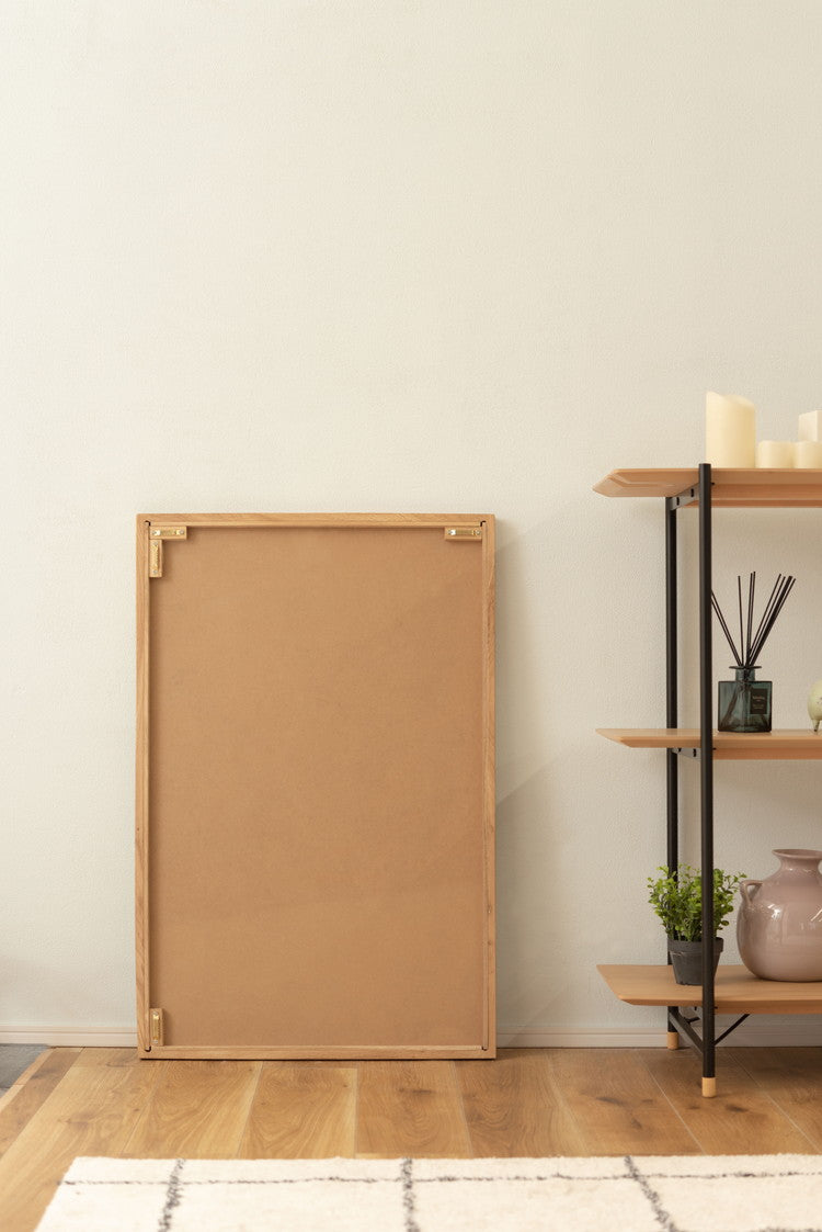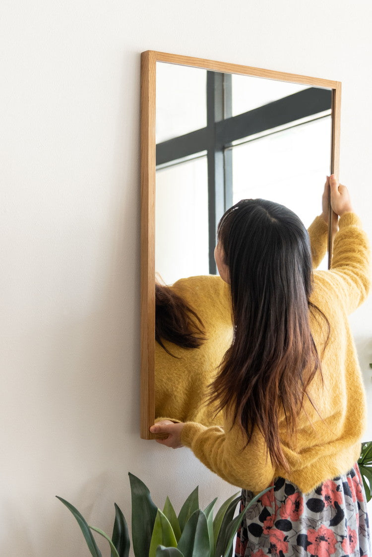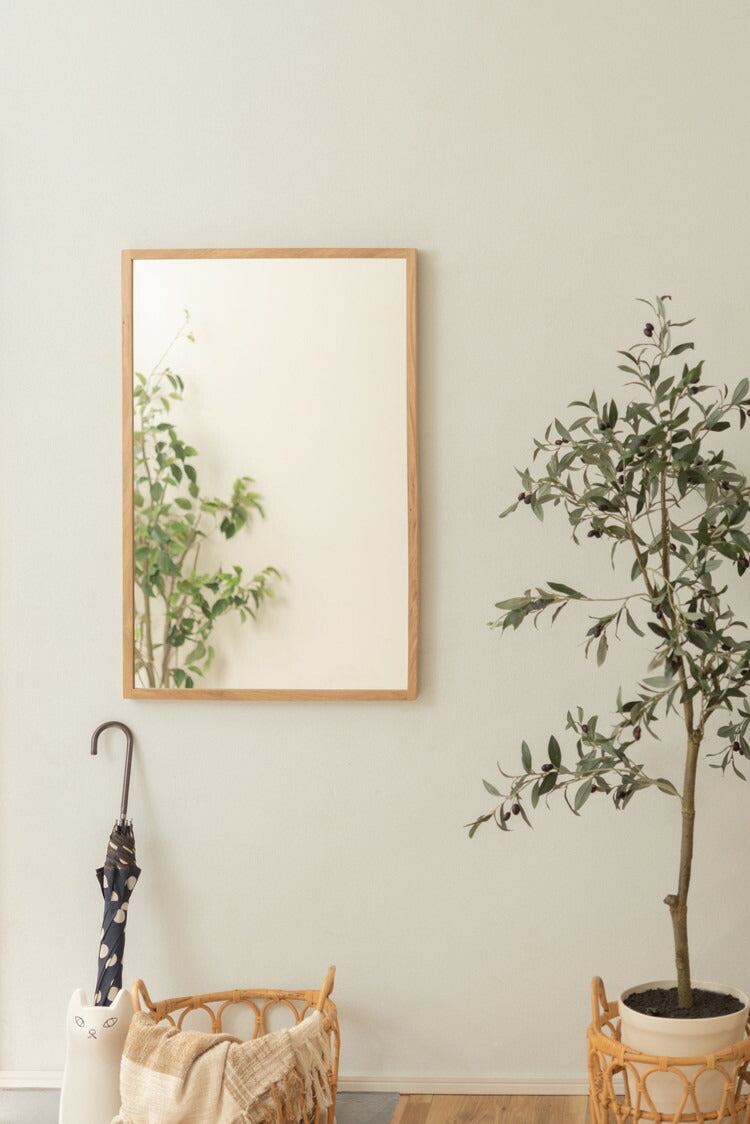 ●耐久性があり高級木材の一つとされる、美しく個性的な雰囲気を持つ天然木(オーク)の無垢材を使用したウォールミラー。●縦にも横にも飾れる2Way仕様。●3mm厚の飛散防止ミラーを使用しているので安心。●玄関やリビングのミラーとして、洗面スペースの洗面ミラーとして、様々な場所で飾れるミラー。