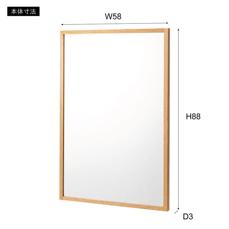 鏡 ミラー スリム ウォールミラー 壁掛けミラー 洗面ミラー おしゃれ オーク オーク無垢材 ナチュラル 北欧 姿見 飛散防止 省スペース 一人暮らし ワンルーム(代引不可)