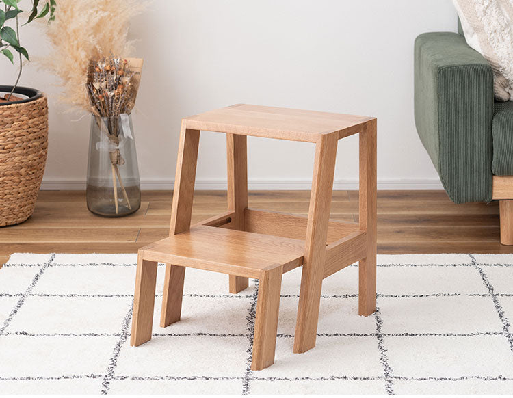 ぬくもりを感じるナチュラルなステップ台が誕生しました。オーク天然木を使用しているため、様々な空間でよく馴染みサポートします。ステップ台としてはもちろん、スツールやディスプレイ台としても活躍します。