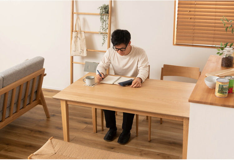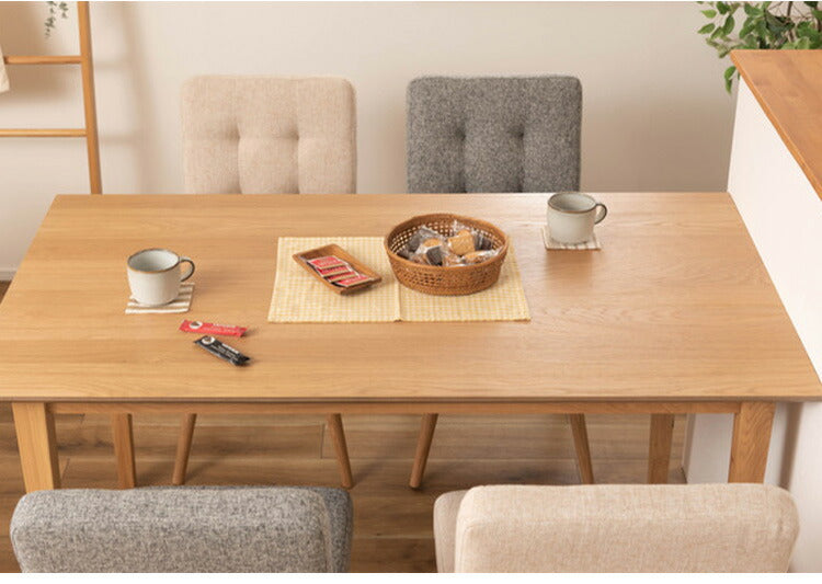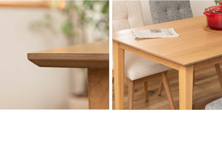 天板のエッジは斜めにカットしデザイン性の高い仕上がり。木目の表情を活かした天板が食卓に彩りを与えてくれます。