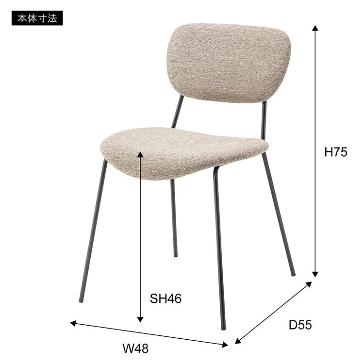 ダイニングチェア おしゃれ 座面高46cm チェアー 椅子 イス 布 ファブリック スチール 背もたれ付き 脚 黒 ブラック アームレス 肘なし 肘掛けなし スリム 固定脚 シンプル モダン(代引不可)