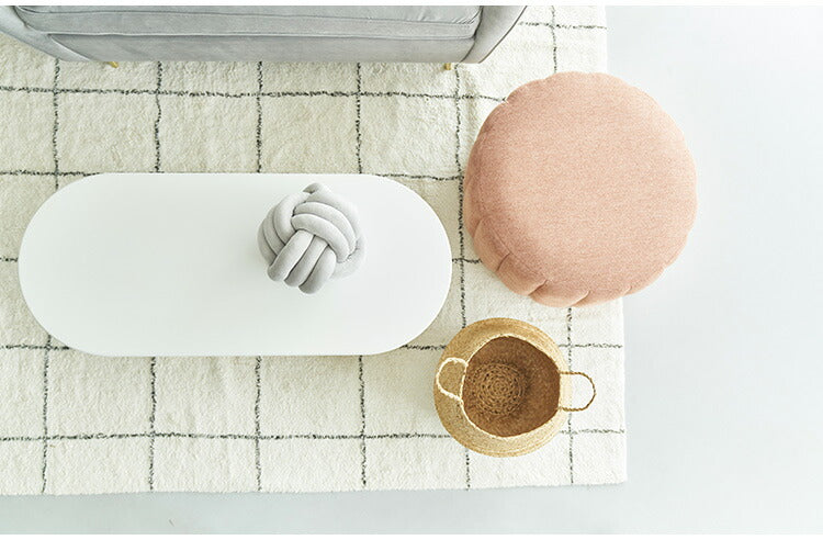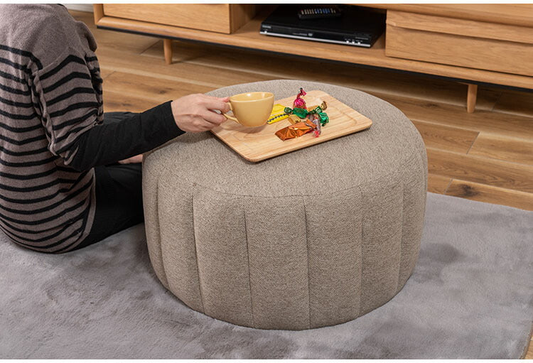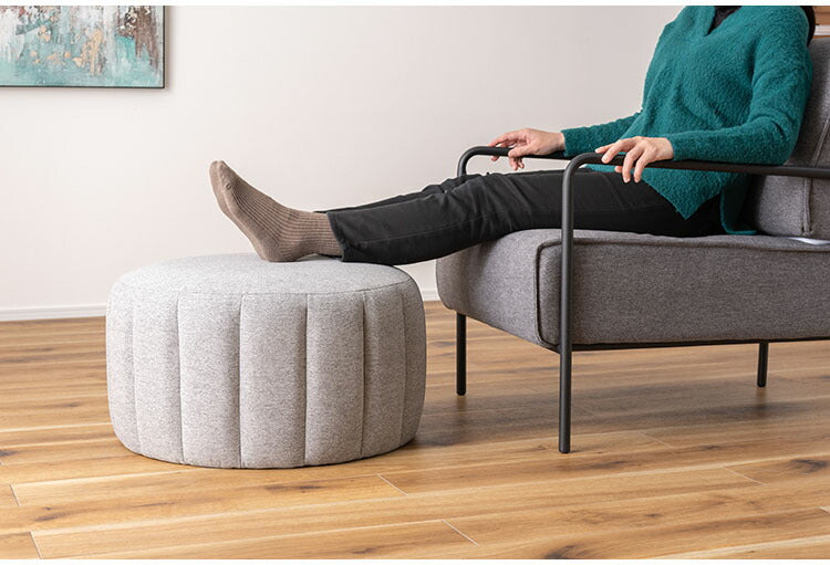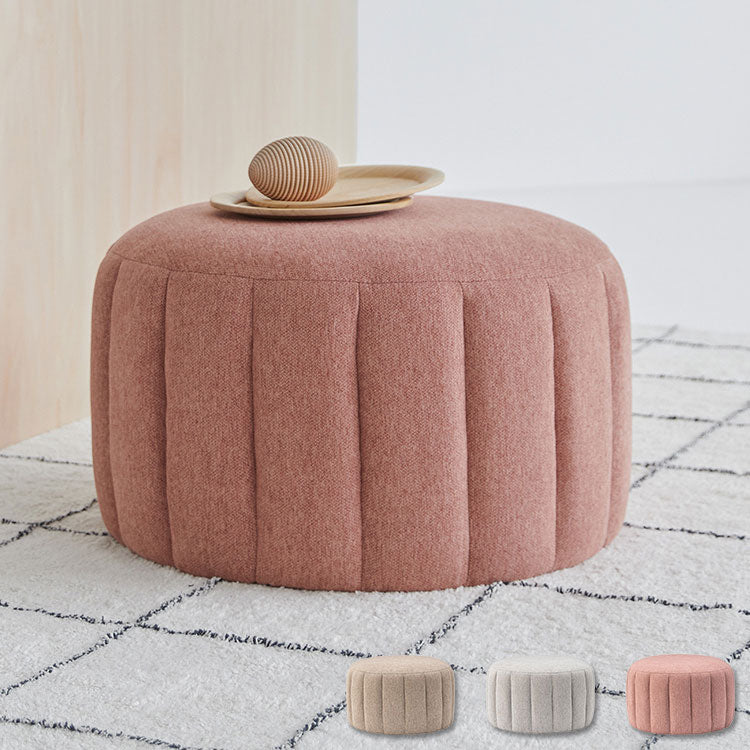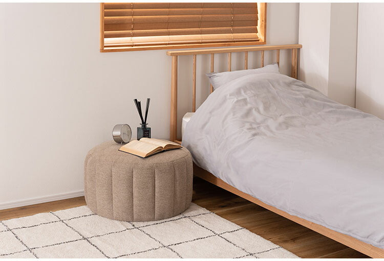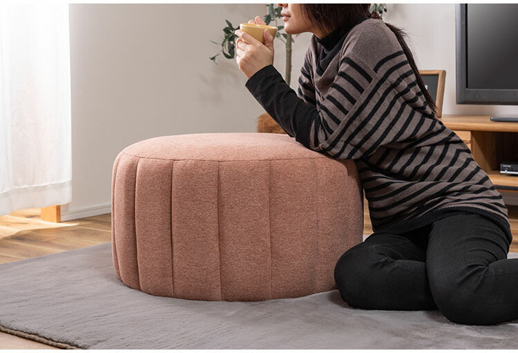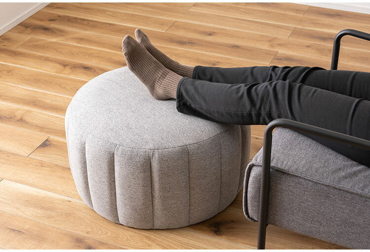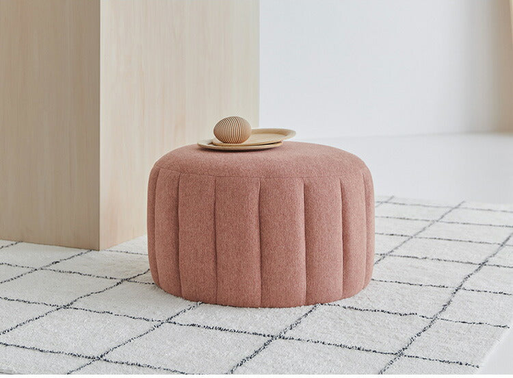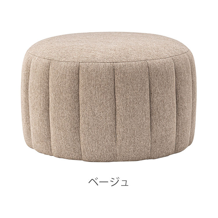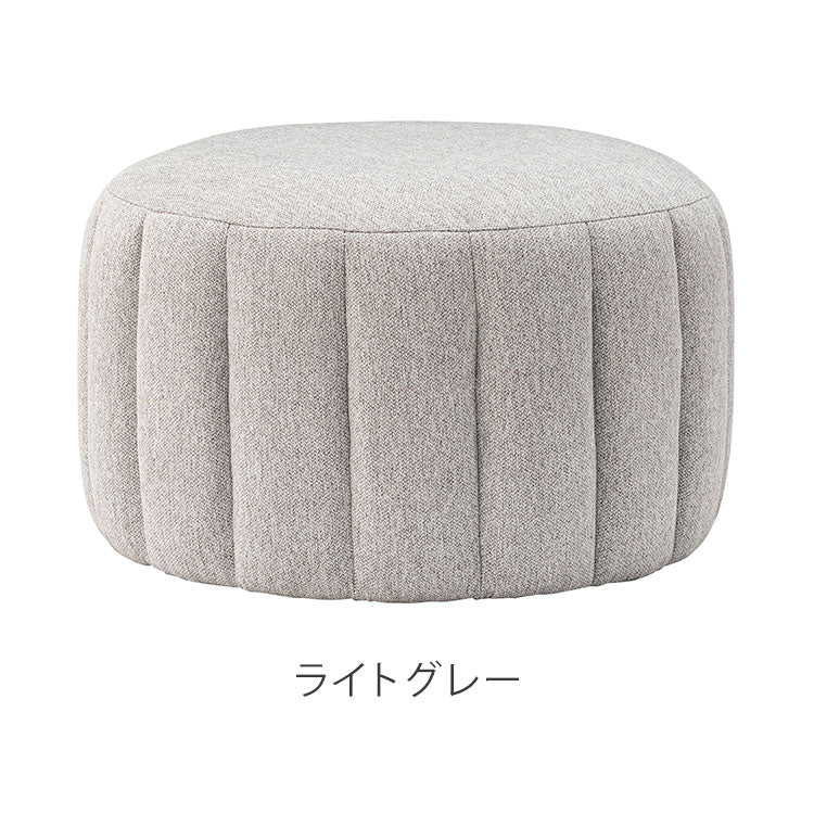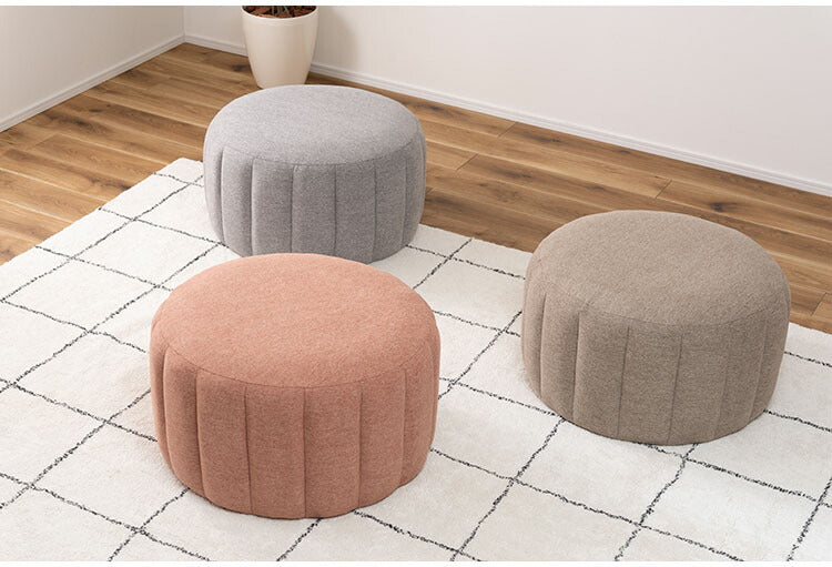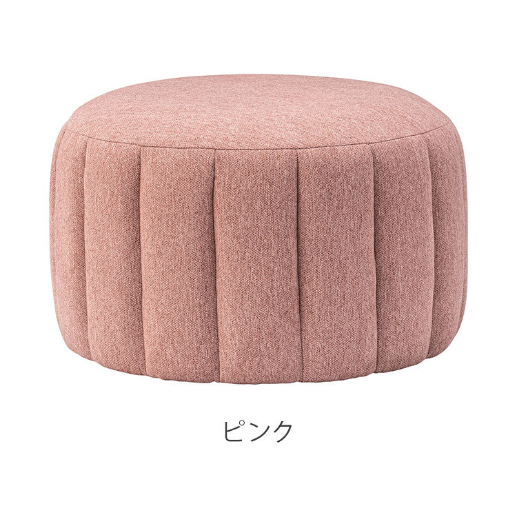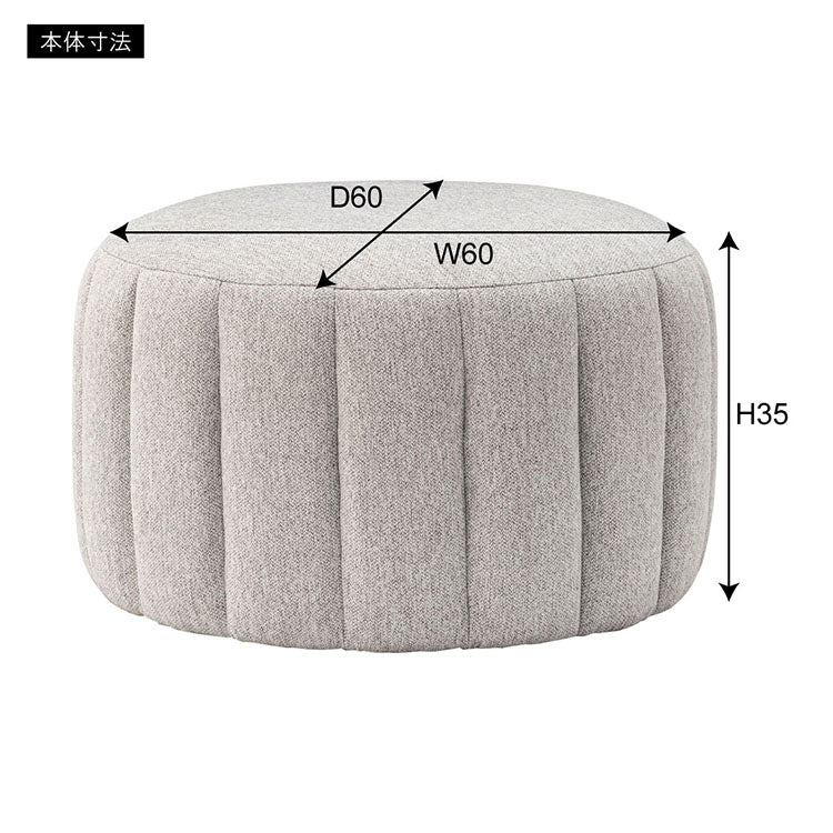 ●直径約60cmの、コロっとした姿が愛らしい大きめスツール。●優しく淡い色合いのくすみカラーのスツールなので、北欧テイストや韓国インテリアテイストとも好相性。●大きめサイズなのでお部屋の中でもちょっと目を引くワンポイントデザインになります。●座面は沈み込みを抑えたしっかりとした作りなので、ソファ前に置いてオットマンとしても使えます。●また、座椅子やベッドの隣に置いてサイドテーブルとして使っても便利。