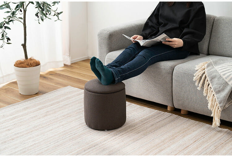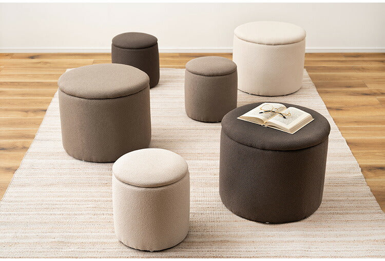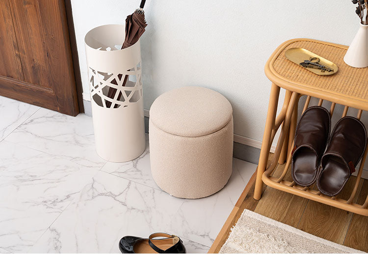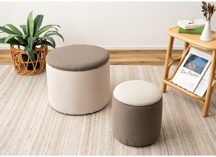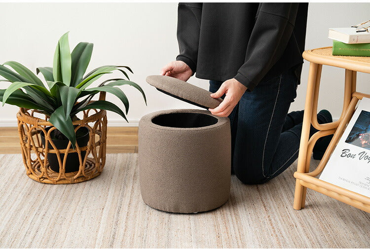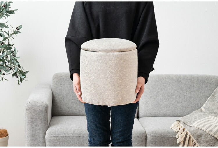 座面を取り外して収納可能なスツール。丸みを帯びたフォルムが可愛らしいデザインです。