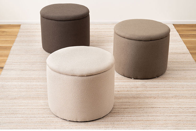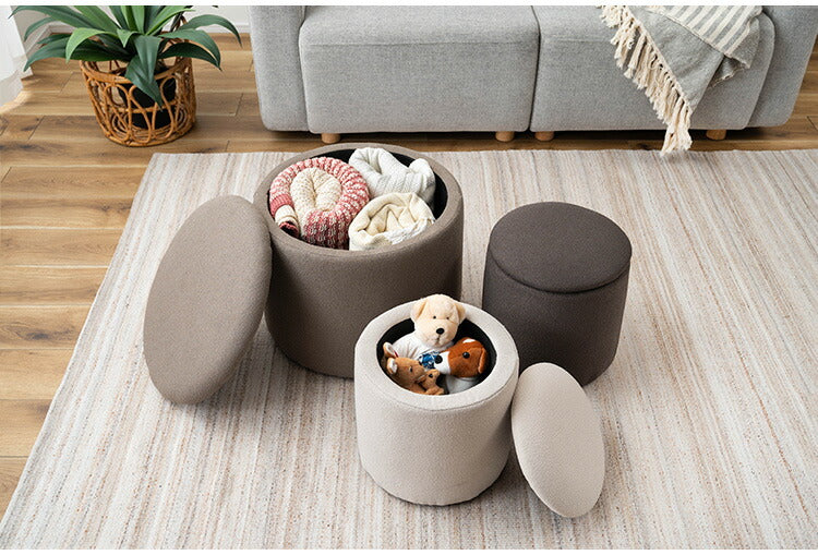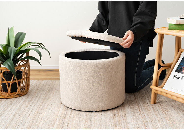 座面を取り外して収納可能なスツール。丸みを帯びたフォルムが可愛らしいデザインです。