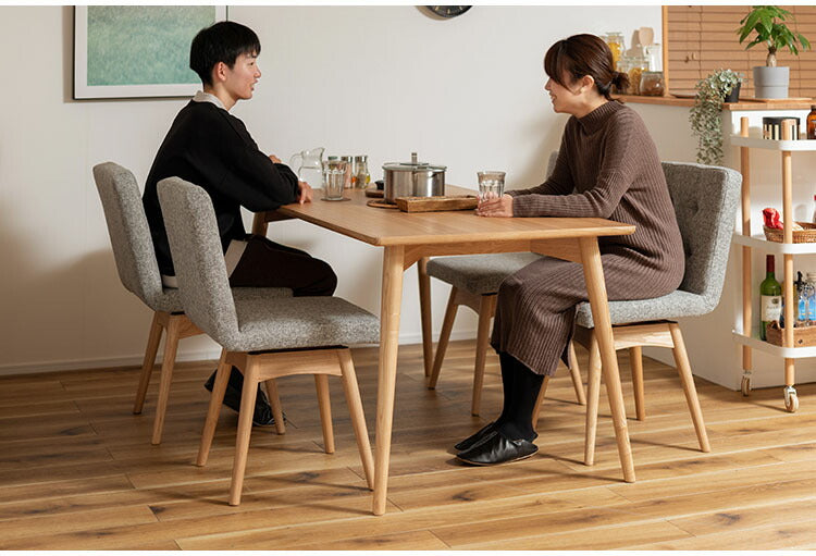 座面回転するダイニングチェア。回転式なのでスペースを取らずに立ち上がりが可能です。