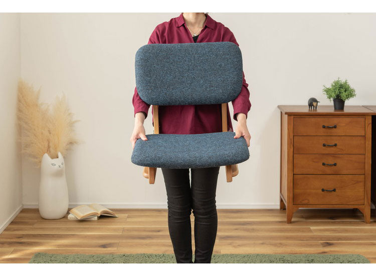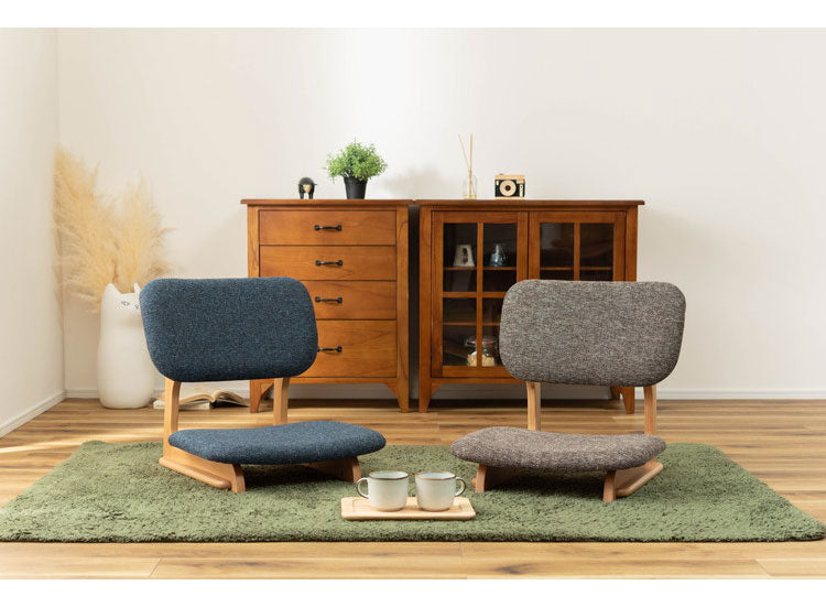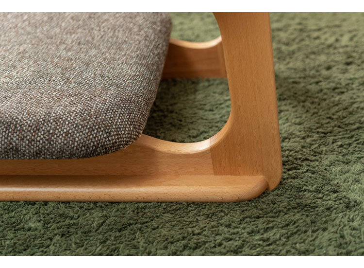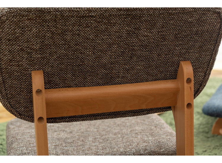 ナチュラルな生地感と天然木の組み合わせが優しさを感じさせるフロアチェア