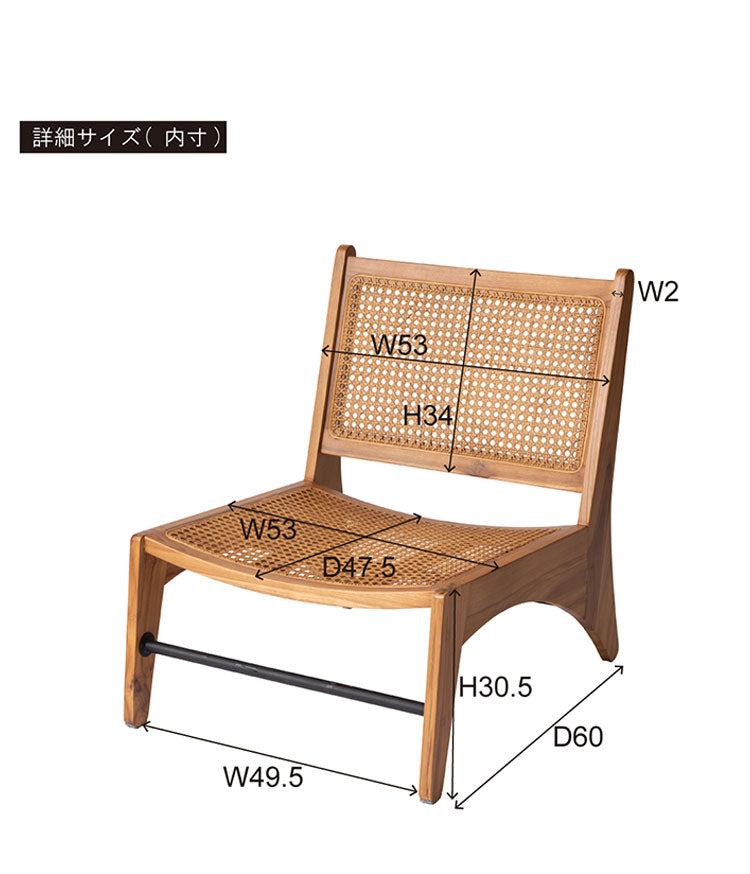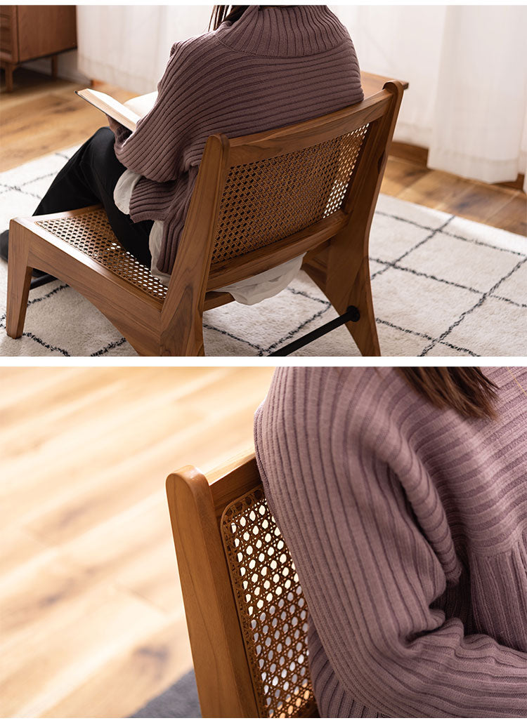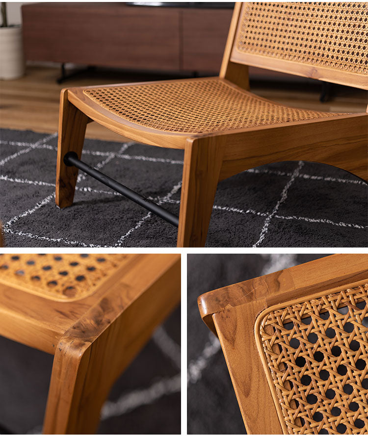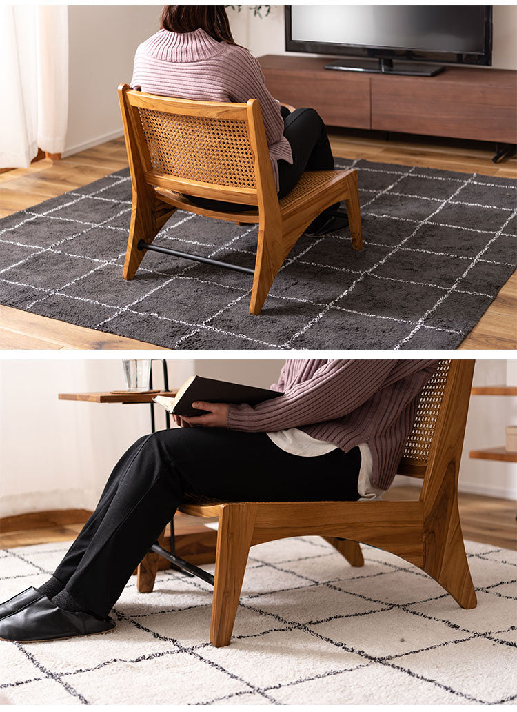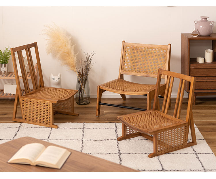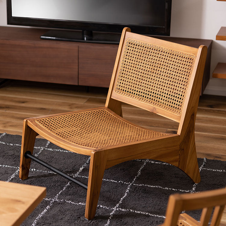 ラタンの編み模様と天然木の木目が美しいフロアチェアシリーズ。