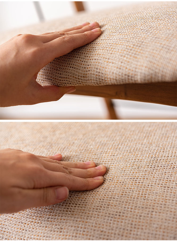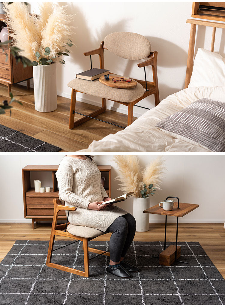 ●天然木とファブリックの組み合わせと直線的なスチール素材が特徴的なデザインのフロアチェア。●コンパクトサイズなので、リビングやダイニング、和室やベッドルームなど様々なシーンで活躍。●軽量設計なので持ち運びもラクラク。●フレームは高級木材の一つ、天然木(チーク)を採用。品のある風合いはインテリアにも最適です。●手にしっくり馴染む天然木のぬくもりも魅力の一つ。●脚裏フェルト付きなので、床への傷防止になり安心です。●3サイズ展開なので、用途や場所に合わせてお選びいただけます。