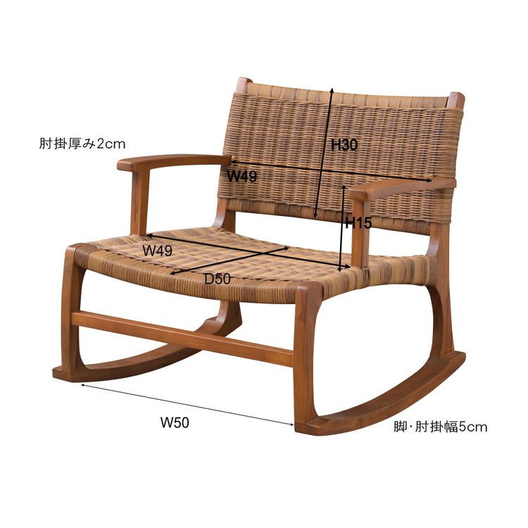 ロッキングチェア チェア パーソナルチェア 椅子 揺り椅子 リラックスチェア 一人掛け リゾート 低め ブラウン 天然木 木製(代引不可)