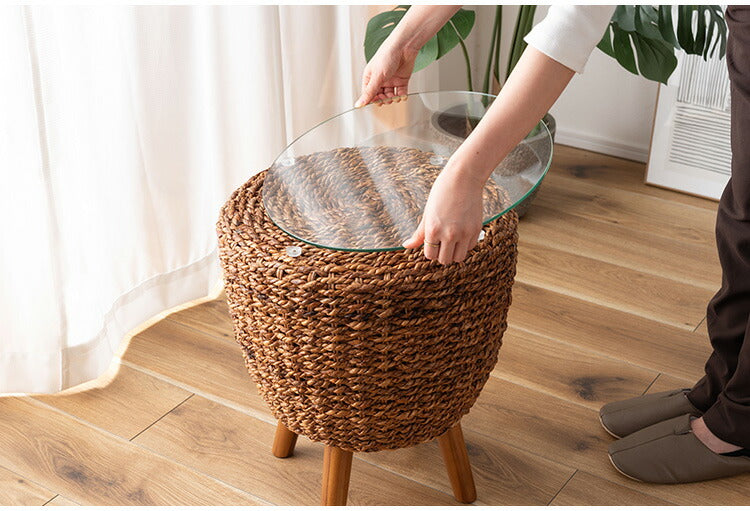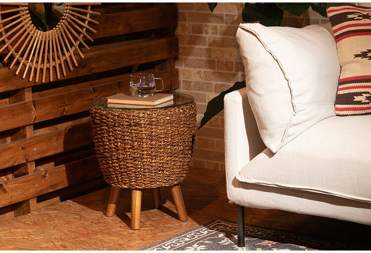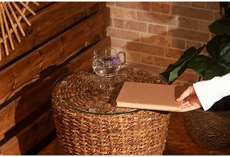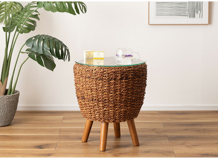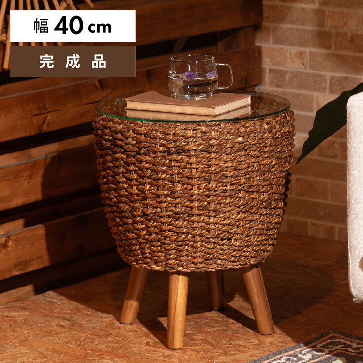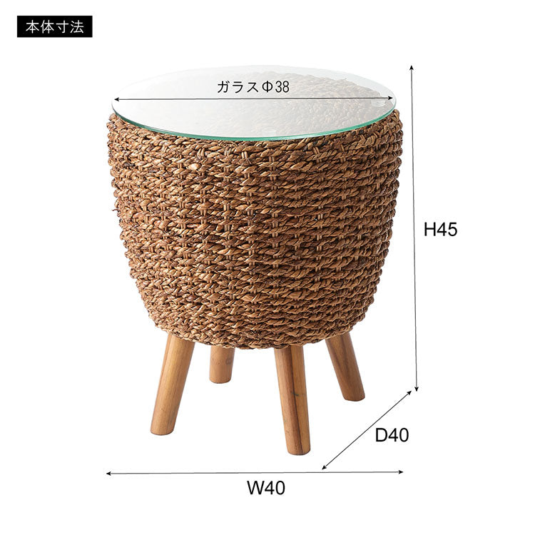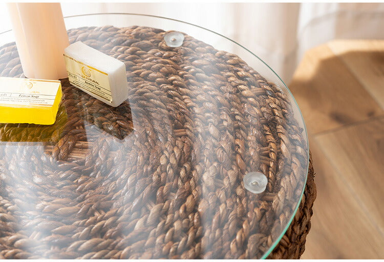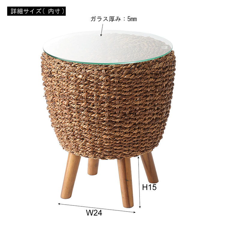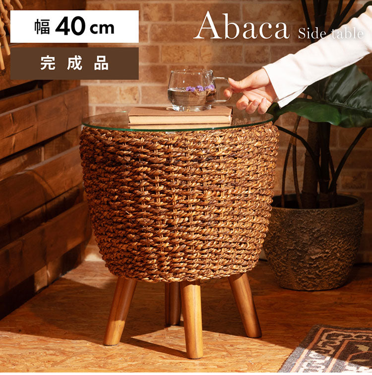 アバカ サイドテーブル NRS-5 東谷 サイドテーブル ナイトテーブル ミニテーブル ガラス 丸型 丸い 円形 おしゃれ アバカ 天然素材 リゾート ラウンジ アジアン ナチュラル(代引不可)