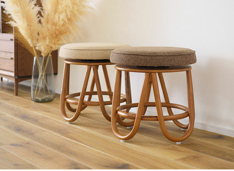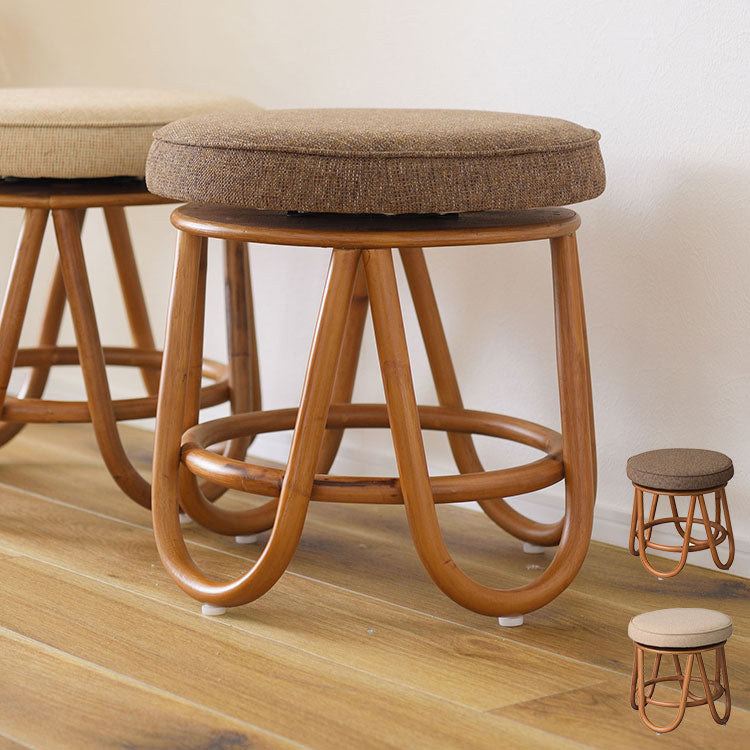 回転スツール スツール ラウンドスツール 椅子 イス いす 360° 360度 回る ラタン ブラウン ベージュ おしゃれ シンプル オットマン 軽量(代引不可)