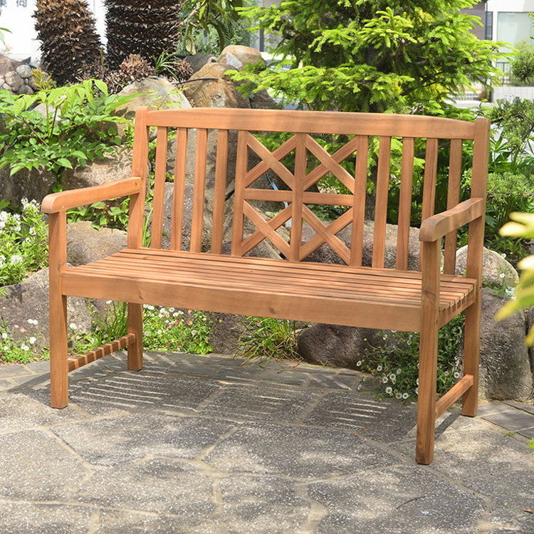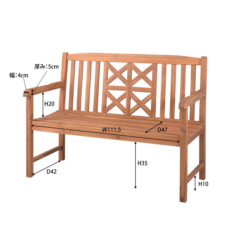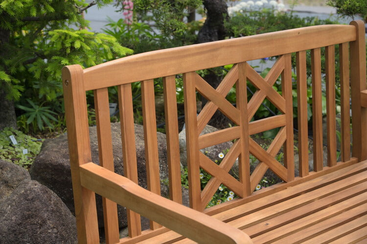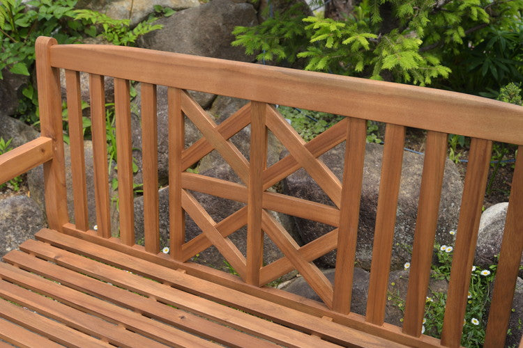 ベンチ 二人掛け 2人掛け 木製 おしゃれ 肘付き アーム付き ガーデン アウトドア アカシア 天然木 バルコニー ナチュラル(代引不可)