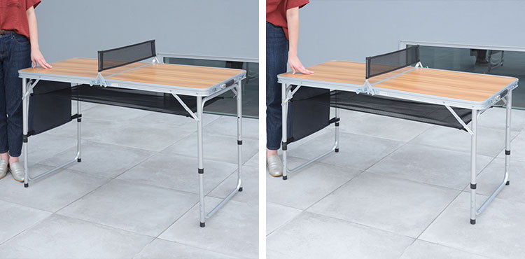 バーを起こしてネットを付ければ卓球台に早変わり。
