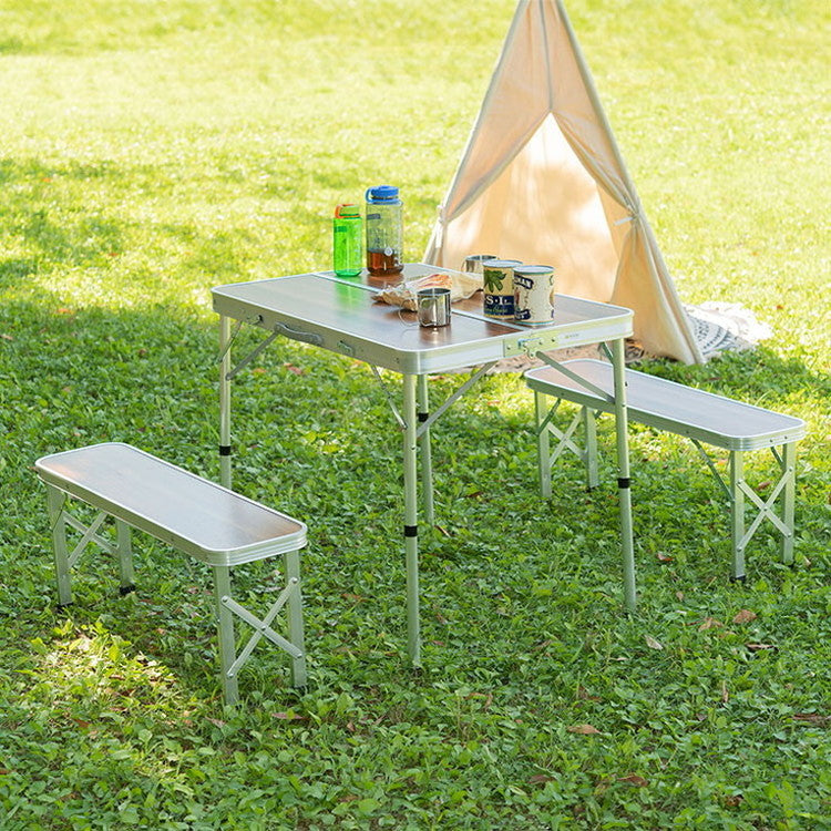 ベンチは折りたたんだ天板の中に格納でき、まとめて持ち運びができます。