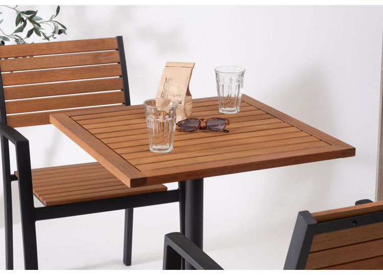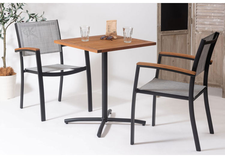オリー カフェテーブル カフェテーブル 机 天然木 アルミ ガーデン 庭 シンプル 2人 アジャスター付き おしゃれ かわいい ブラック インテリア 省スペース 新生活 一人暮らし(代引不可)