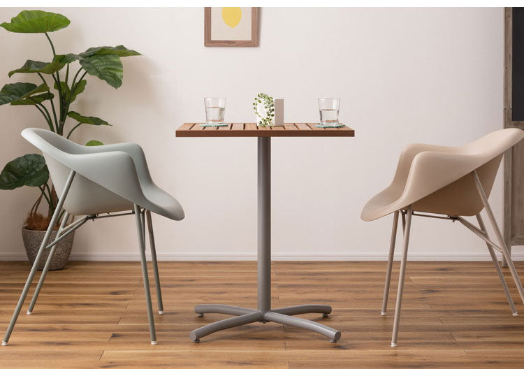 ●シンプルなテーブルは様々なチェアに合わせやすくカフェスタイルを演出。