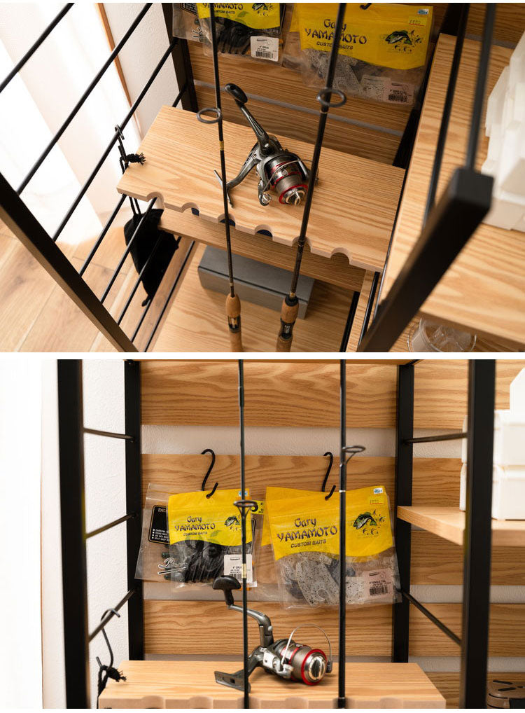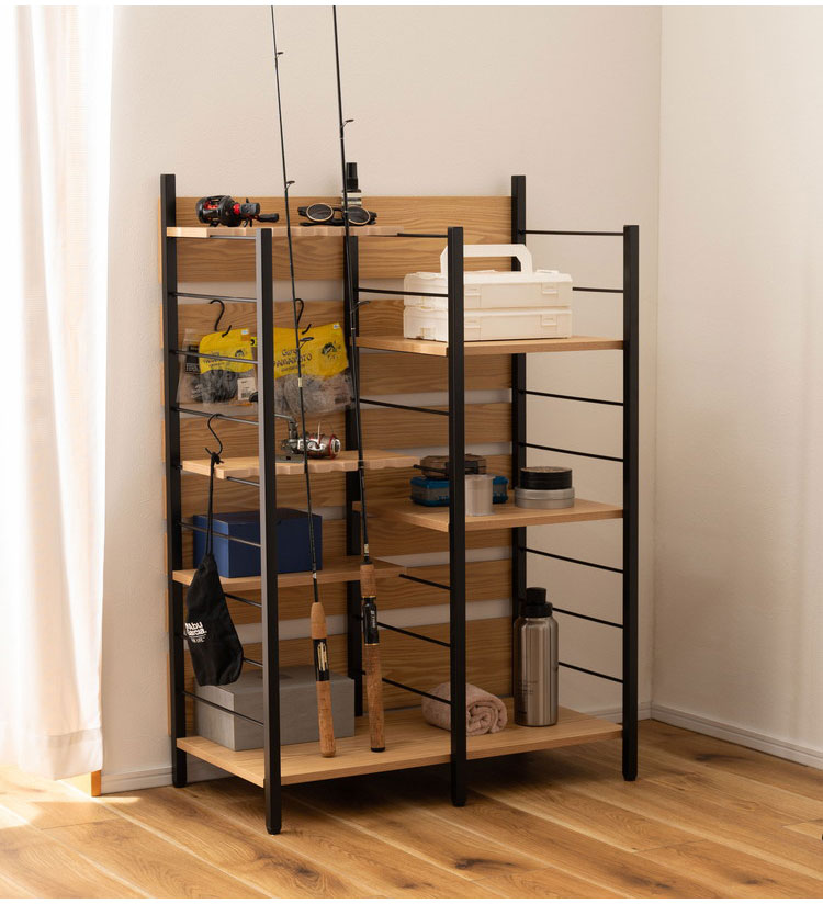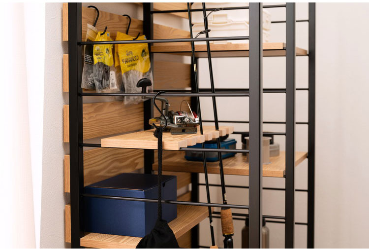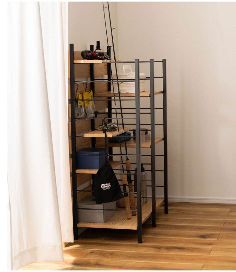 ●木目調の棚板とスチールフレームを合わせたおしゃれなデザイン