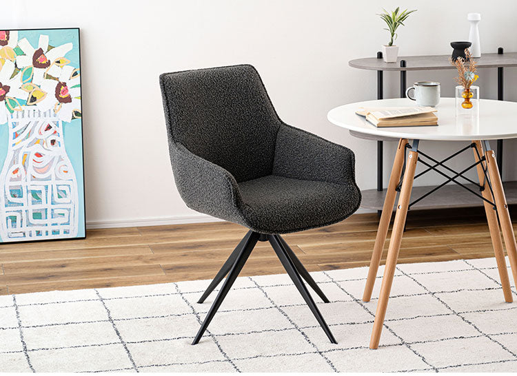 立体的で動きのあるファブリックを採用し、シンプルで洗練された印象の回転チェア。