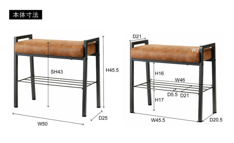 幅50×奥行25×高さ45.5×座面高さ43cm