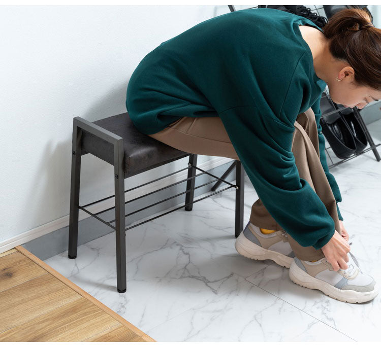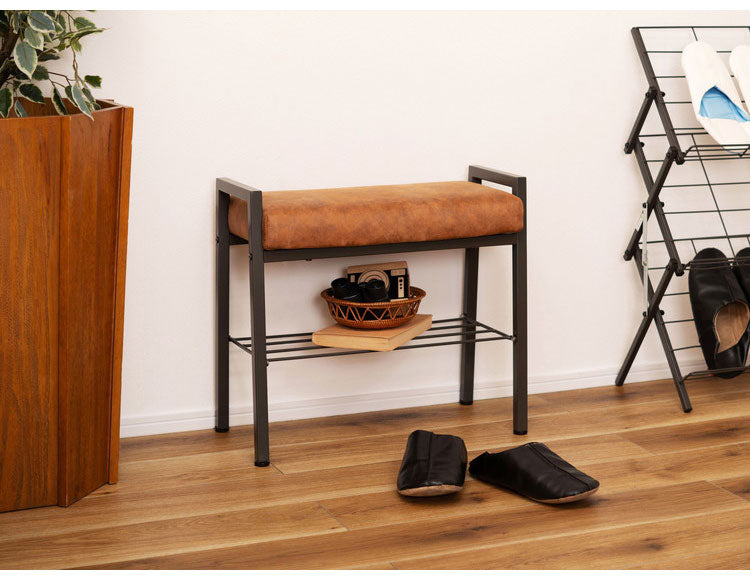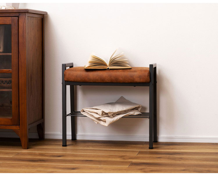 下部にはスチール素材のシンプルな棚板が付いているので、ちょっとした雑貨をディスプレイしたり、玄関先で使用する際はスリッパなどを置いて置いたり様々な使い方で楽しめるアイテムです。
