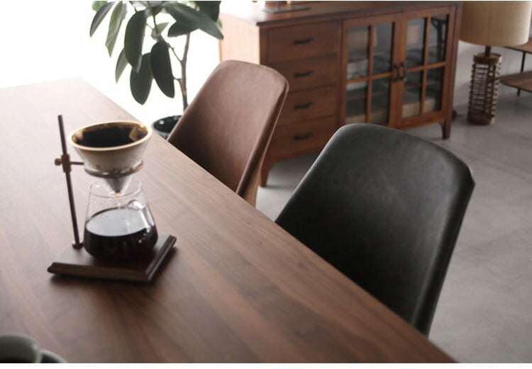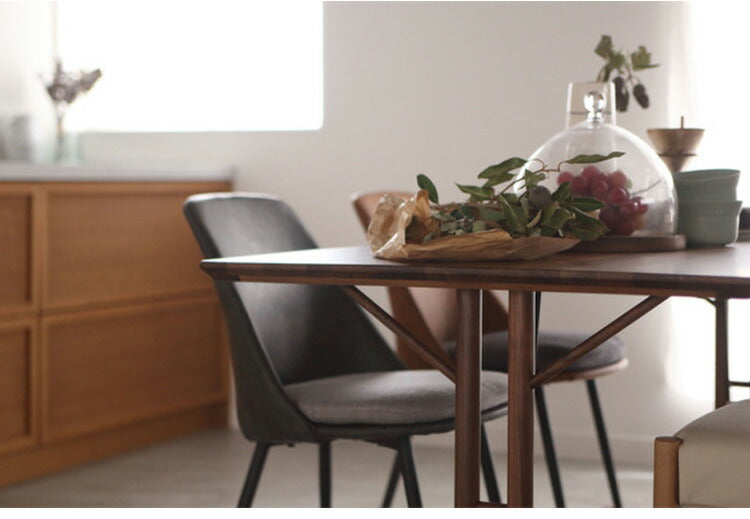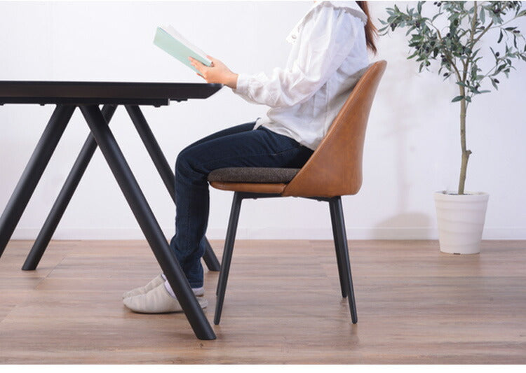 レザーと布地の貼地が目を引くアファブルチェア 座面の幅が広いのでゆったりとした座り心地を体感できます。
