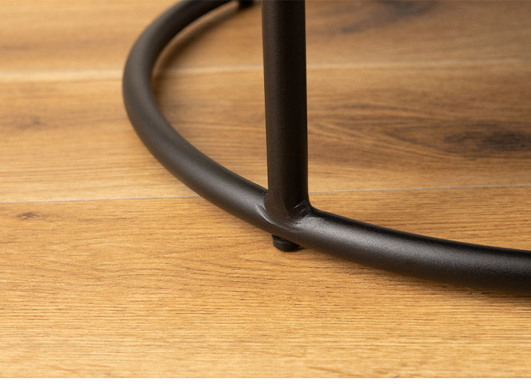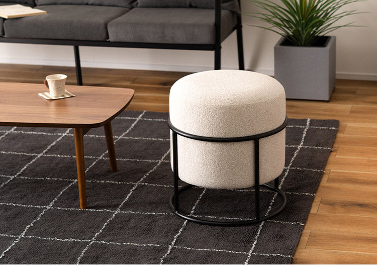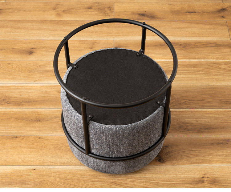 クッションをブラックスチールが包み込む、シンプルなデザインのスツール。