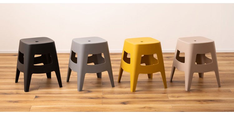 ●シンプルながら絶妙なカラーリングが目を引くスタッキングスツール。