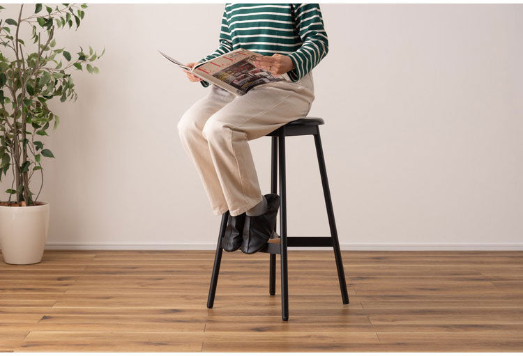 ハイスツール 高さ74cm チェア カウンターチェア 天然木 スチール ブラック シンプル デザイン 個性的 おしゃれ 北欧 インテリア かわいい リビング ダイニング 円形 丸型 モダン 木製 ラウンド(代引不可)