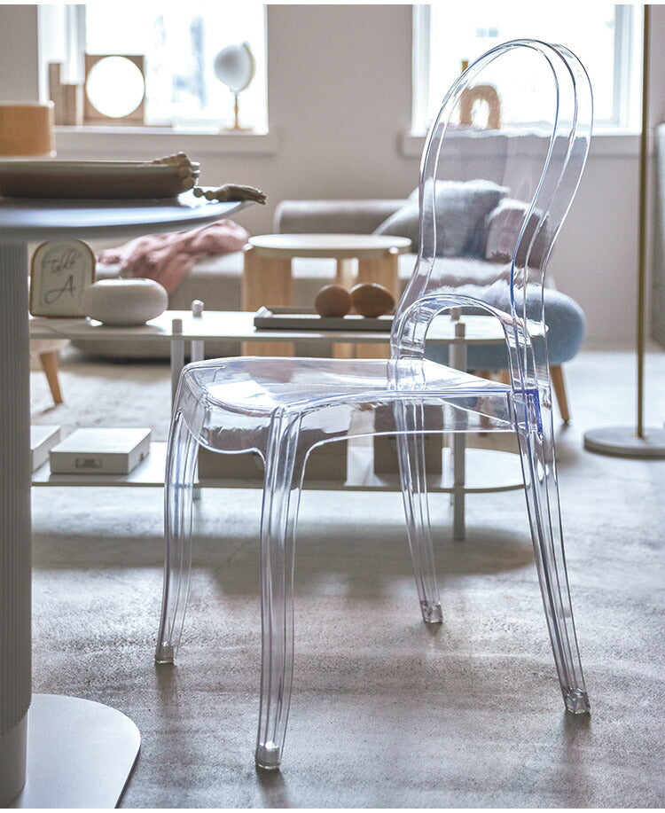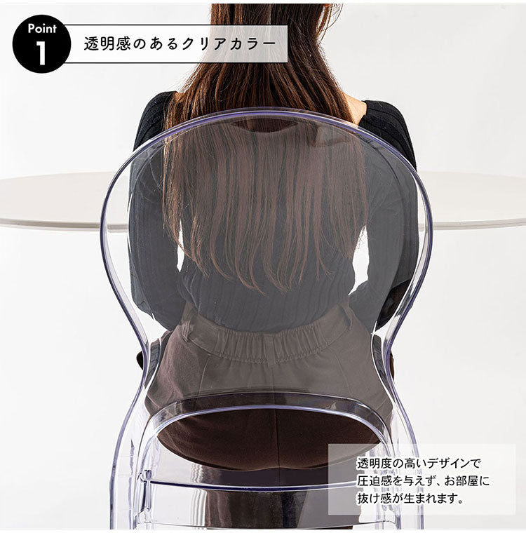 ●透明度の高いデザインで圧迫感を与えず、お部屋に抜け感が生まれるチェア。