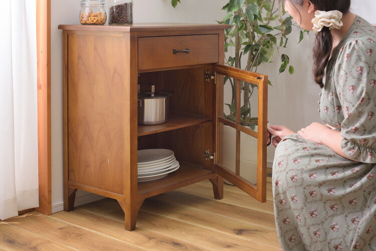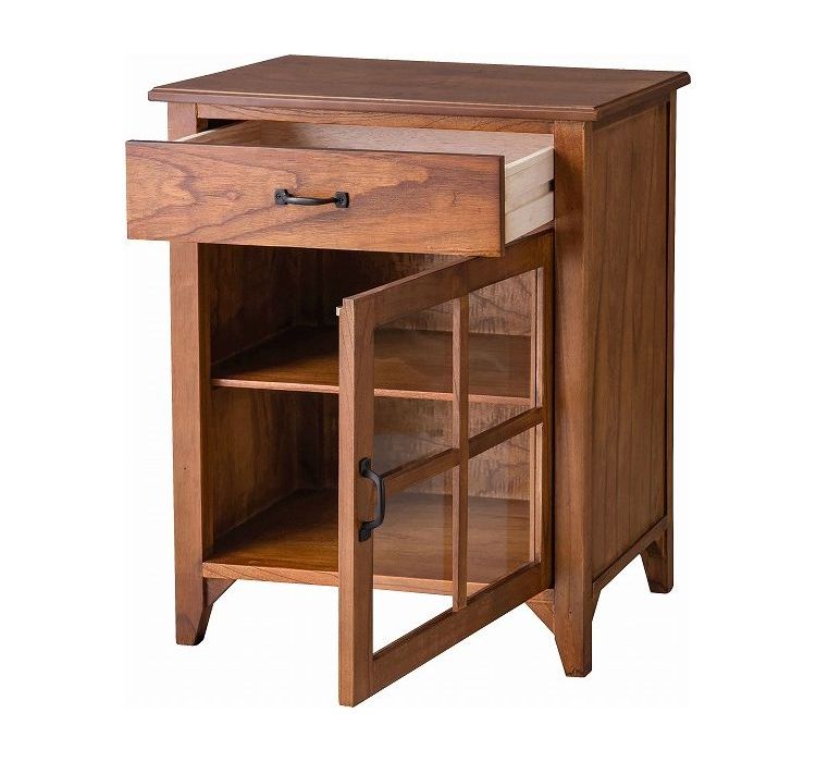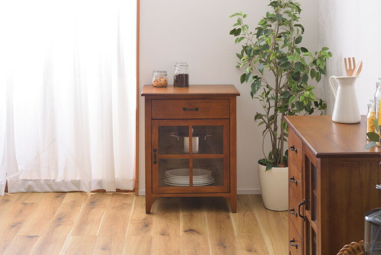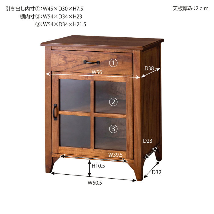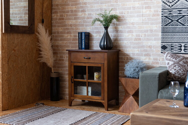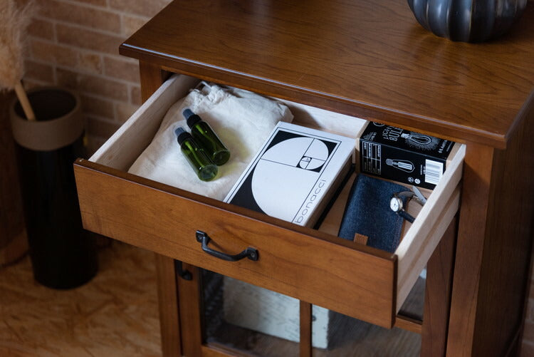 キャビネット ミニキャビネット ミンディ材 天然木 アンティーク スリム 省スペース 小さめ 黒アイアン ブラウン 収納 引き出し付き おしゃれ 模様替え(代引不可)